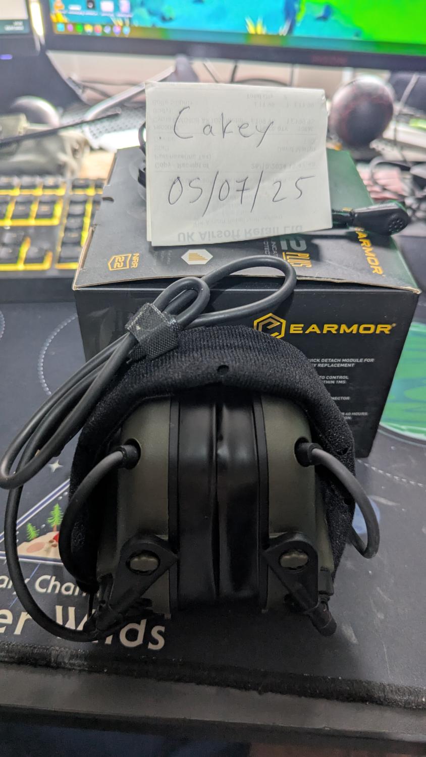 Great condition Earmor replica M32 headset with microphone. Works great for sound amplification and keeping your ears safe from explosions and BBs alike. Comes with a Kenwood PTT adapter that doesn't normally come with the headset out of the box. Colour is Ranger Green. No defects, I've just moved on to a pair of Comtacs for personal use.