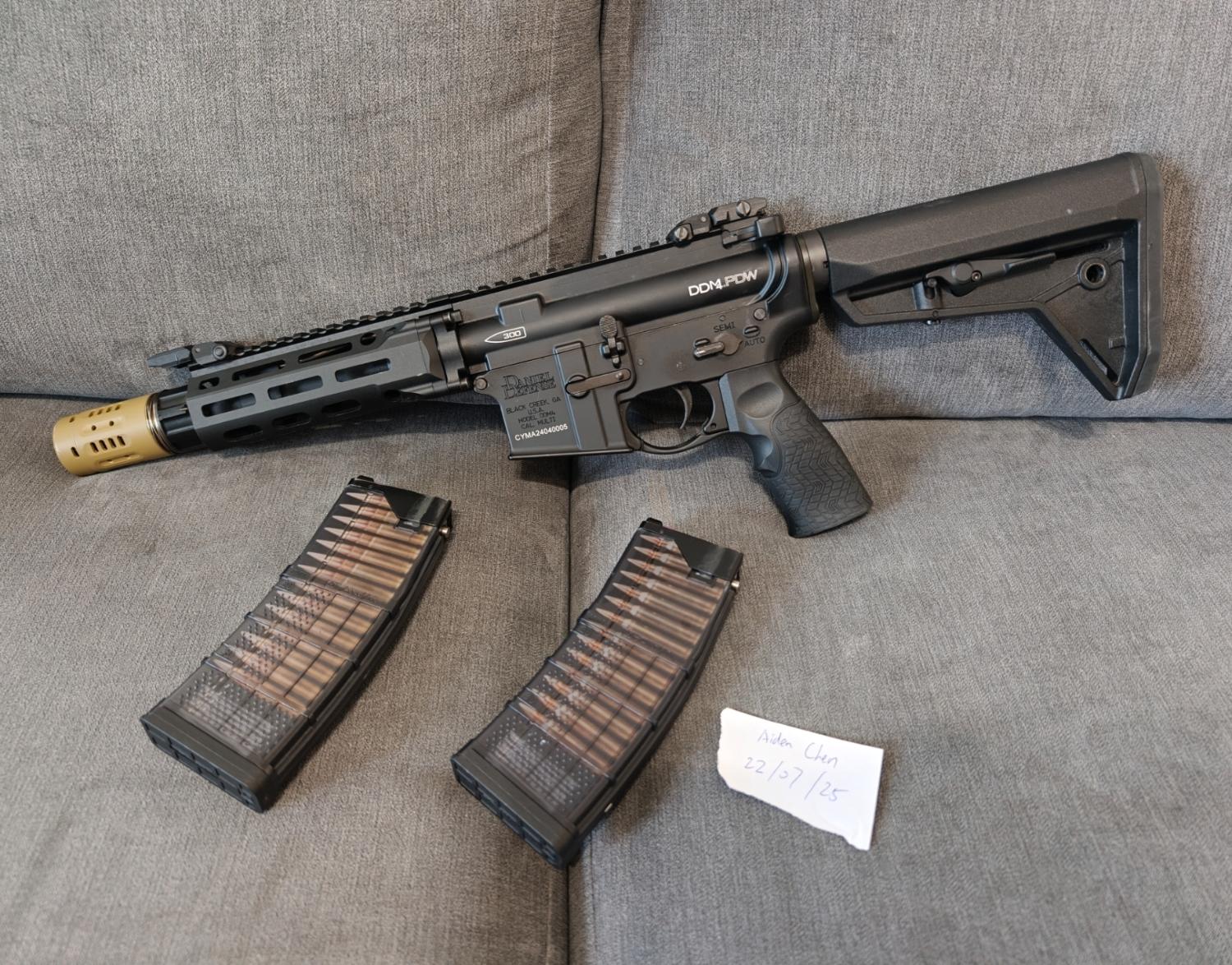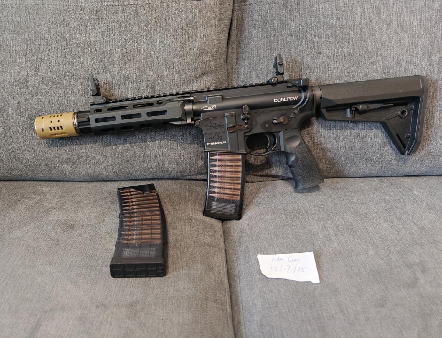 Comes with 2 gas tight mags and a Dead Air Pyro style flash hider by 5ku