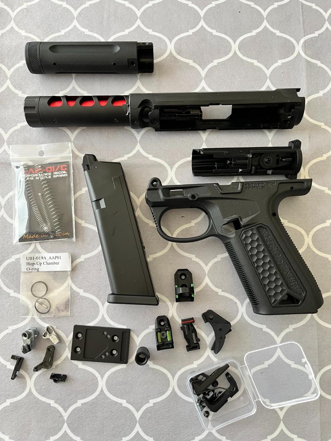 All the original AAP-01 parts and a few others such as a ghost ring sight.