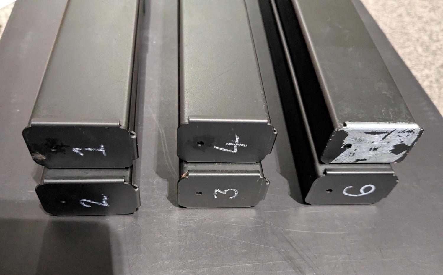 Supplied boxed with manual as well as 6 midcap magazines holding around 120rd each. The base plate fell off one of the midcaps whilst playing last summer, so I made and fitted a replacement from 1mm steel plate. The satin black paint has started to flake off from use (pictured), but the magazine functions perfectly.
