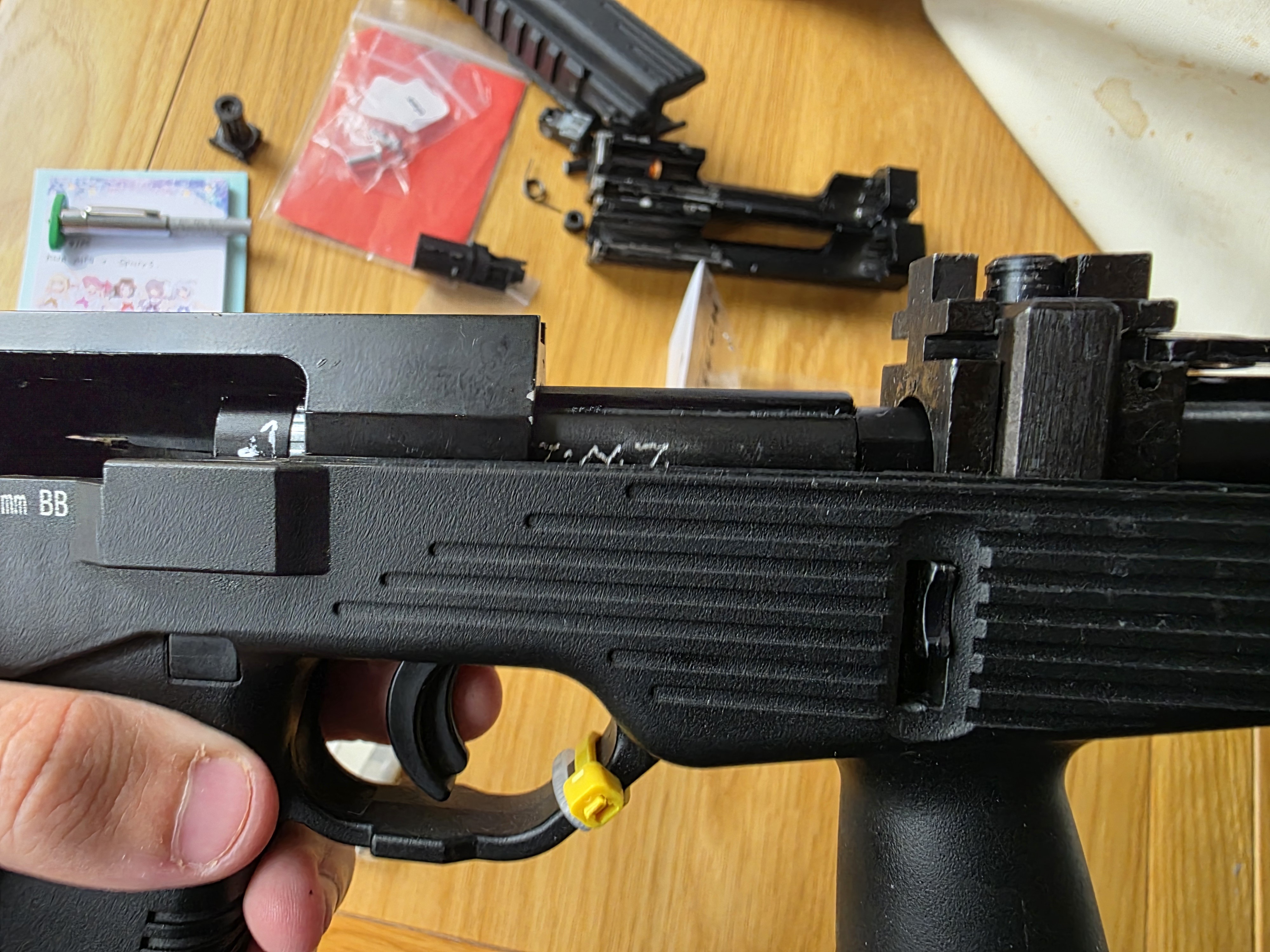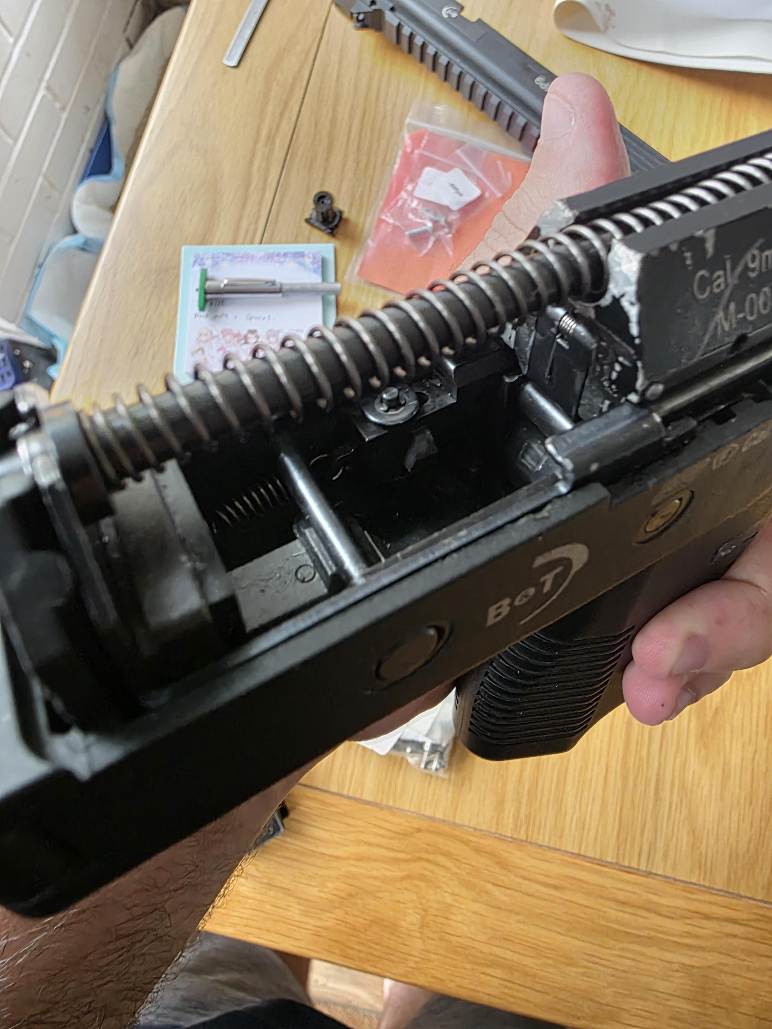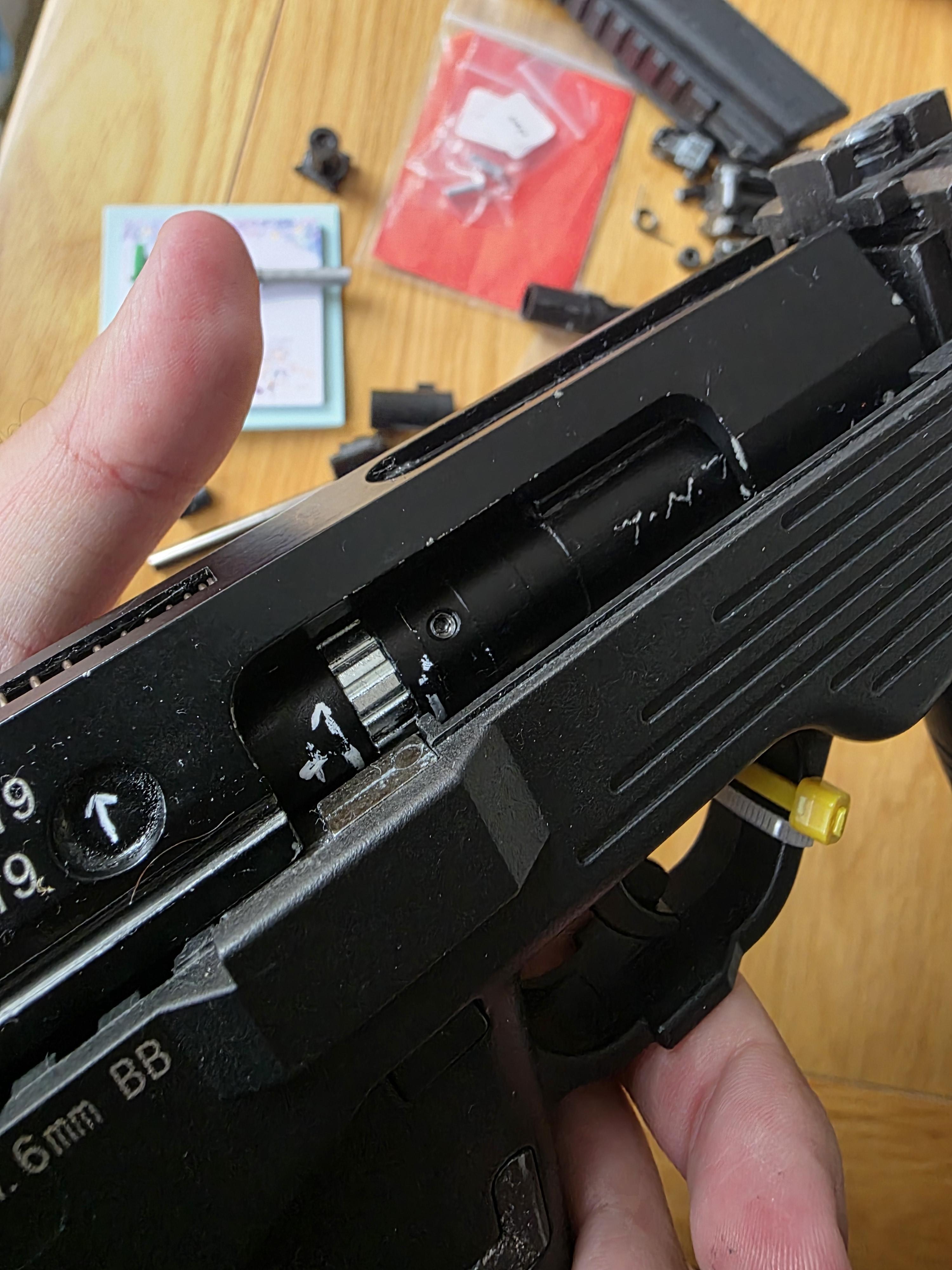 Original barrel setup (disassembled, no clue how to re-assemble, hop up adjustment never worked as no ball bearing was inside)