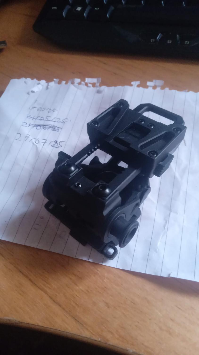Argus NVG mount. Mounted to a helmet (without NV) for 1 game. I wanted to dissemble this to fit to a fixed-mount but this was a non starter as the screw stripped very easily (pic shown). Doesn't affect function.