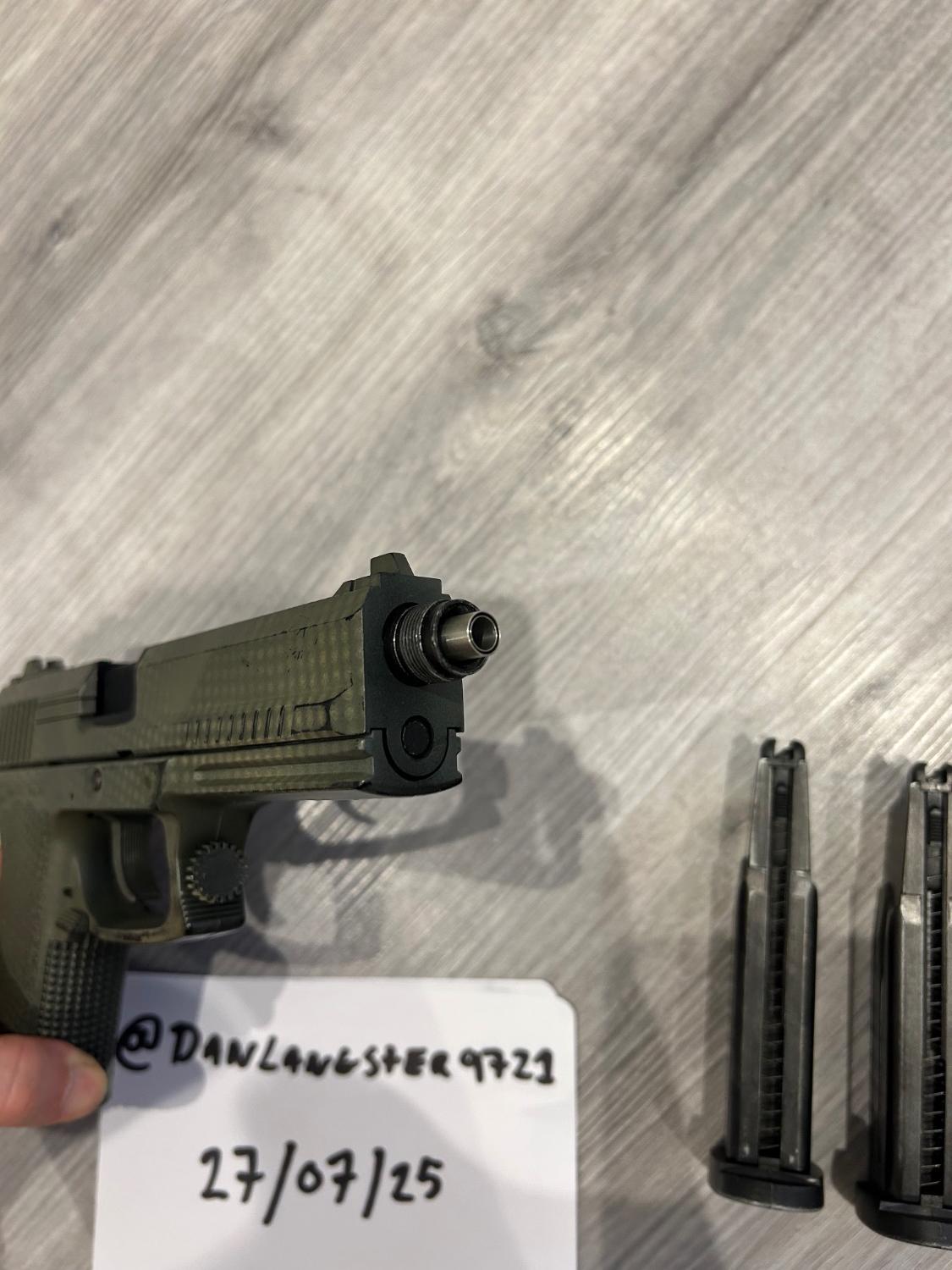Upgraded MK23, has Hadron H-Arm V2, Hadron triple Screw TDC Plate, Flamingo 50 bucking, Maple Leaf Inner Barrel & Sniper Mechanics HEXX 16mm Suppressor.