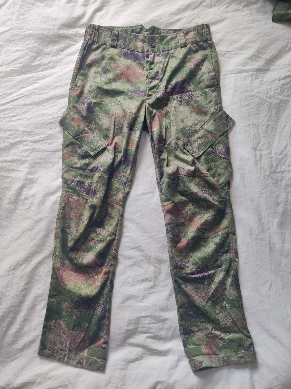 I bought these in China, never used them, just tried on once for size. The pattern is the PLA's current issue Forest Pattern Type 21 Camouflage. If you are looking for some hen's teeth in your loadout, here it is...