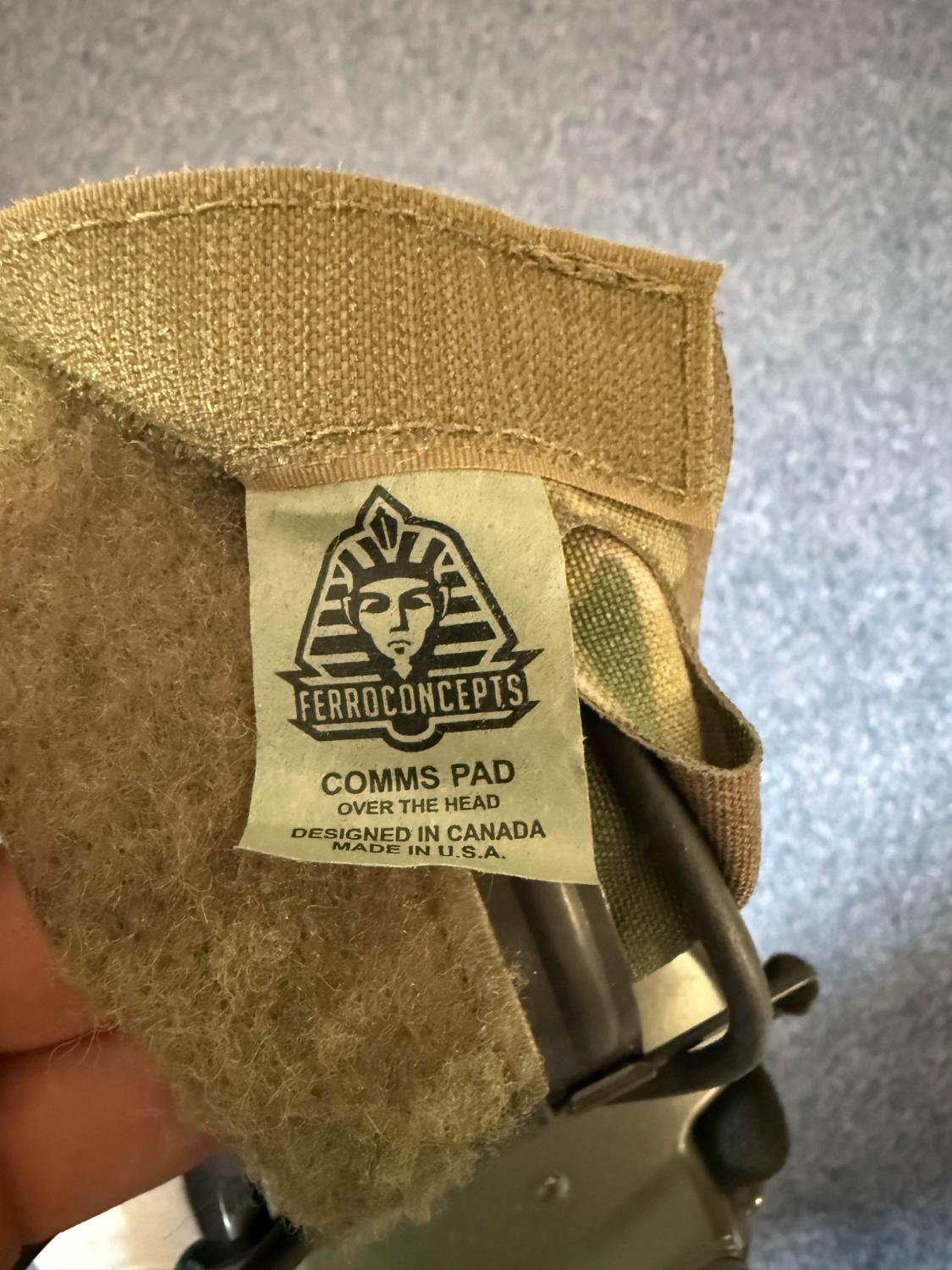 Genuine Peltor Comtac XP headset (no mic) with a multicam Ferro Concepts headband cover.