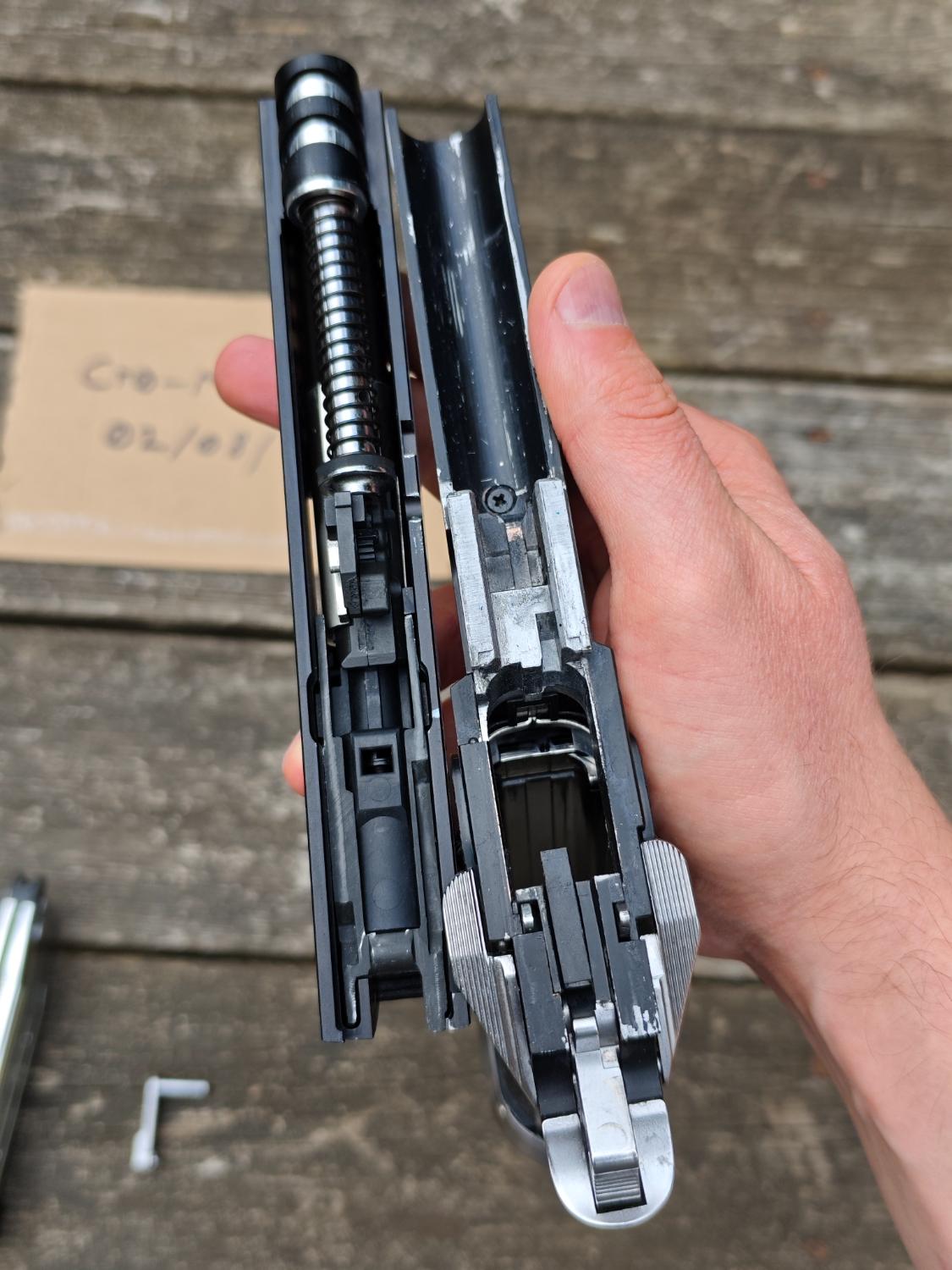 I will also include a Hi-Capa Hub ‘TORQ’ 140% Recoil Spring, which makes the gun a tad snappier but reduces the reliability of it locking back.