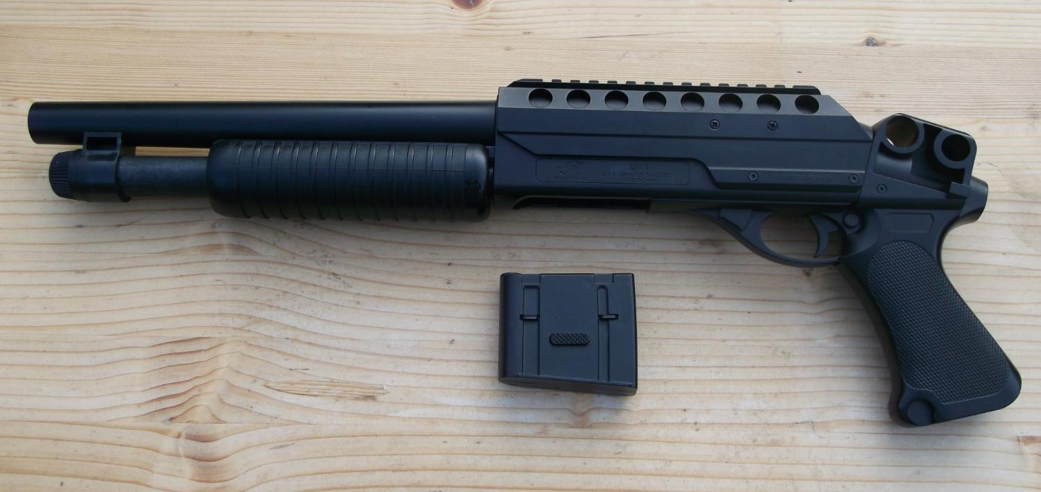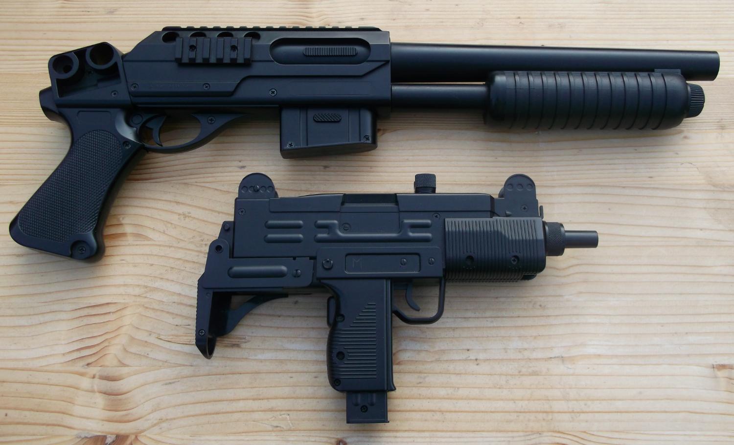 Cheap pump action shot gun and electric mini uzi. 6mm BB. Uzi is top loading pour in the BB's. Shotgun has magazine but fires one BB per pump. Just fun guns. Both together. £5.00 postage