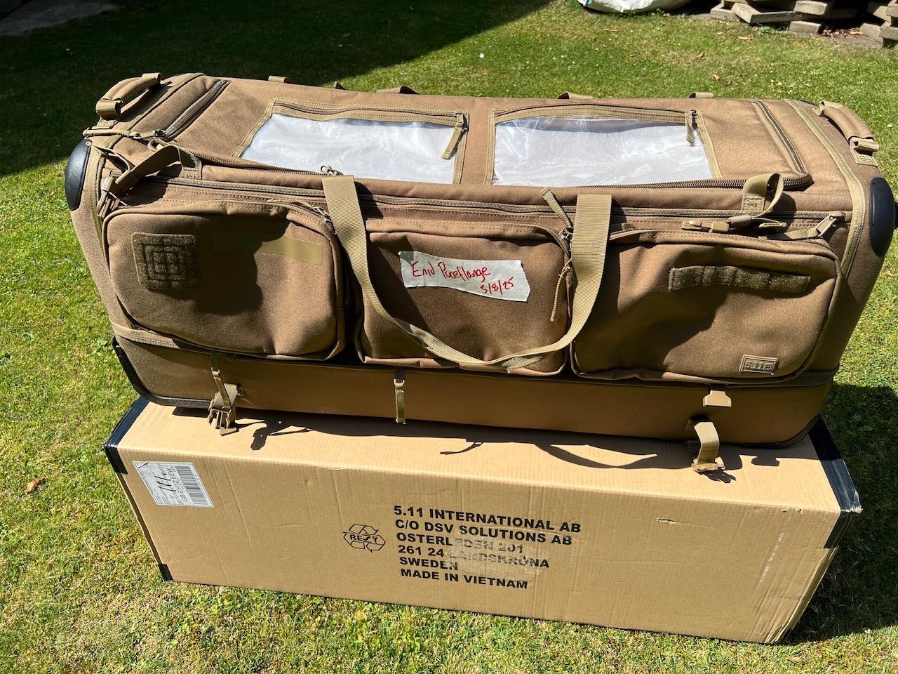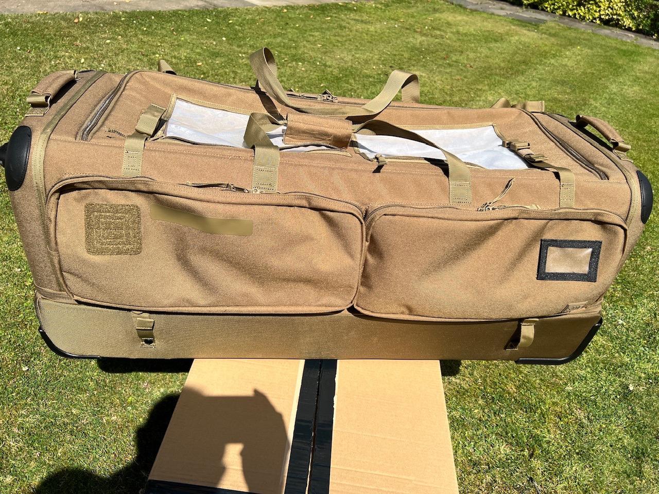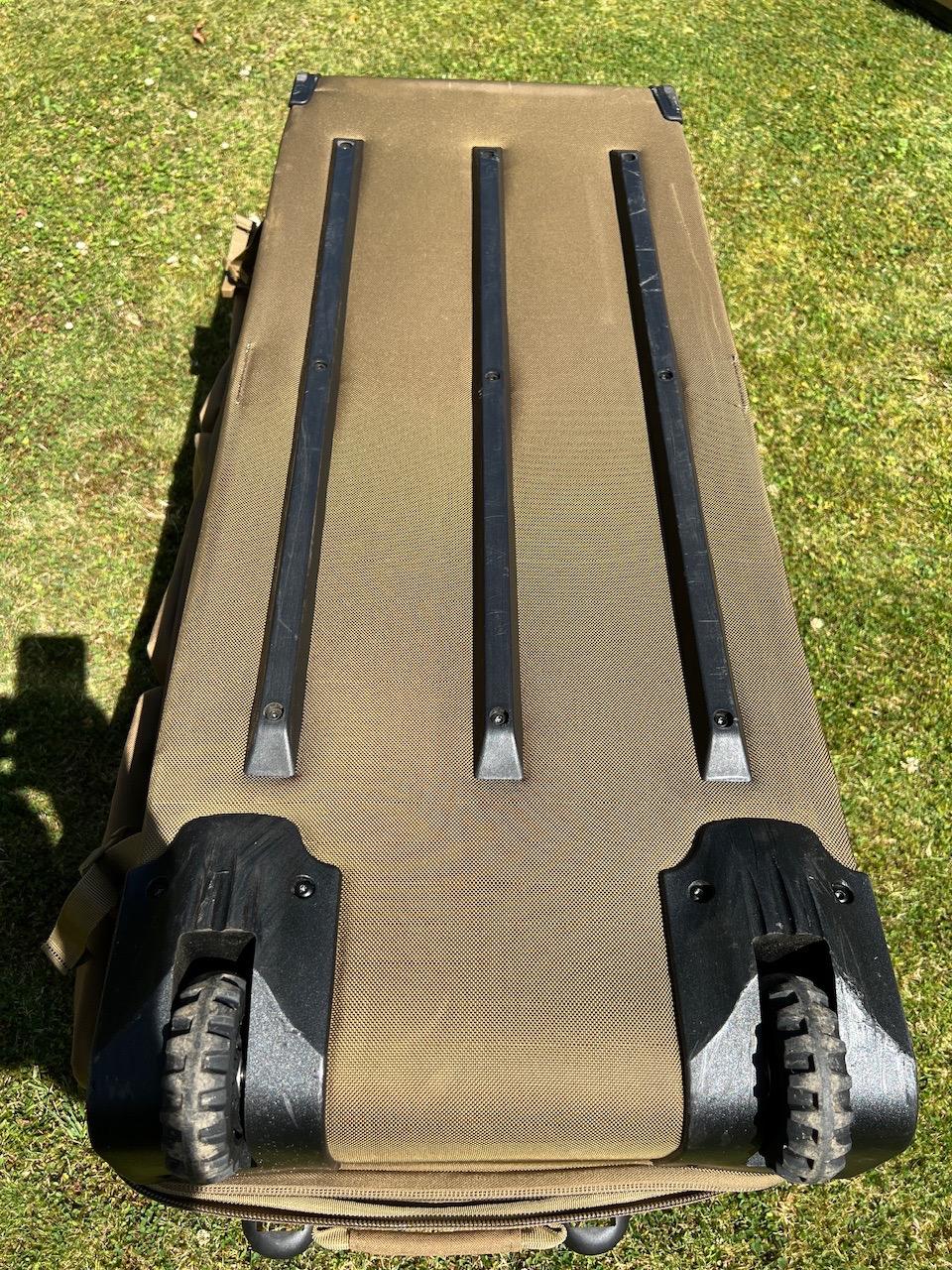 easily carries two rifs in the lower compartment and all of your gear in the upper section, and external pouches!