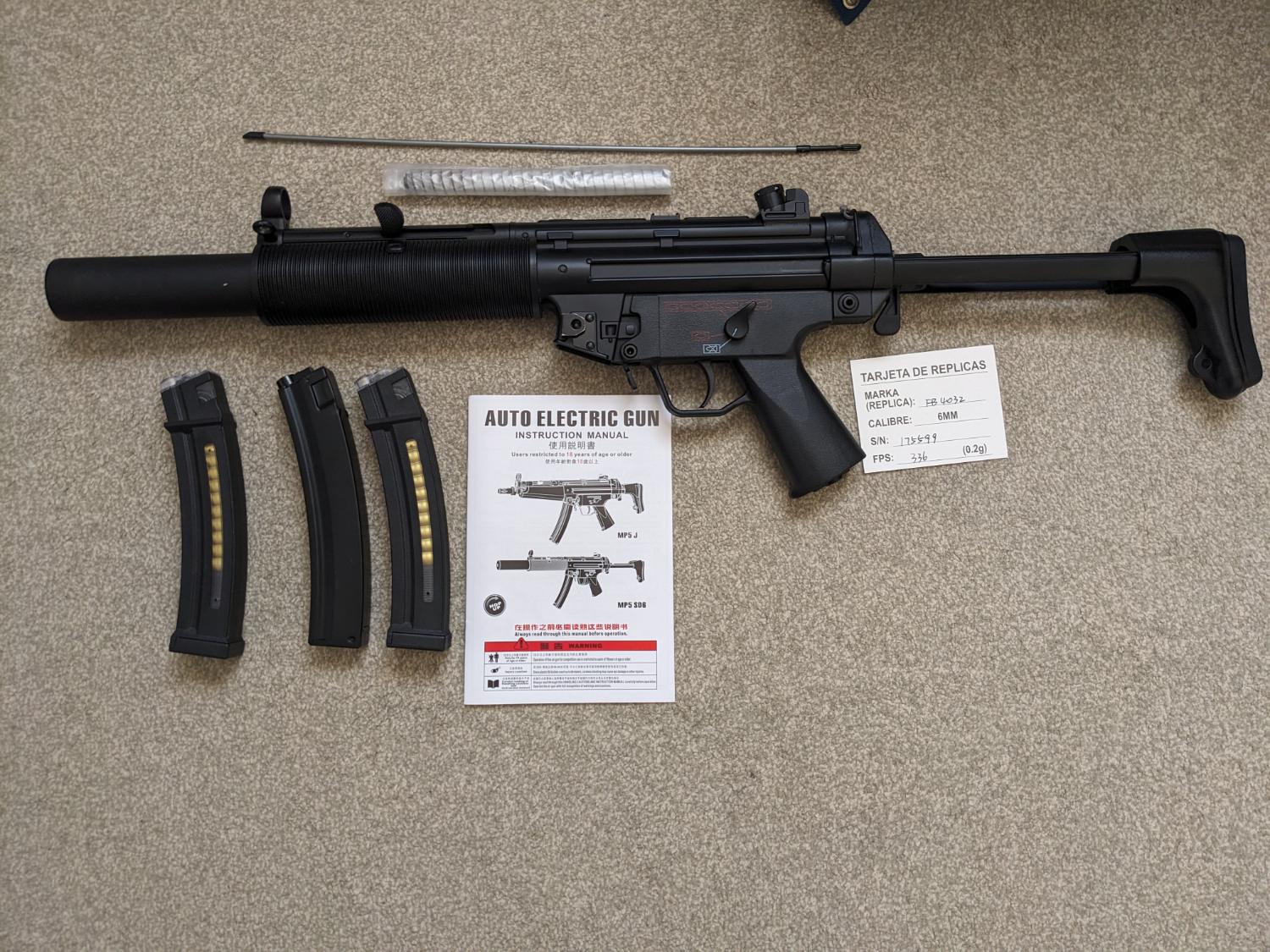 Selling my "CYMA CM.041SD6 High-Speed SMG-5 AEG" with 2 additional automatic loading mags and 2 batteries.