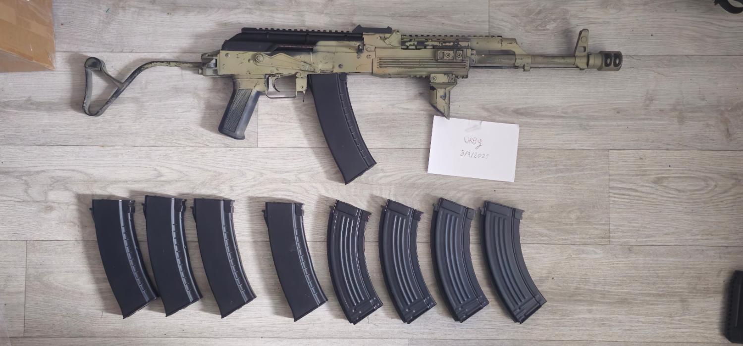 Cyma ebb ak74 with the iconic Romanian wire stock and 5 5.45 mid caps and 3 7.62 metal mid caps and 1 7.62 hi cap. Cyma Railed dust cover included selling due to it not getting used much as I exclusively use gas blowbacks now. Collection from coventry preferred but can post in its original box for a tenner ontop