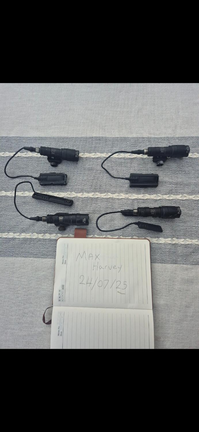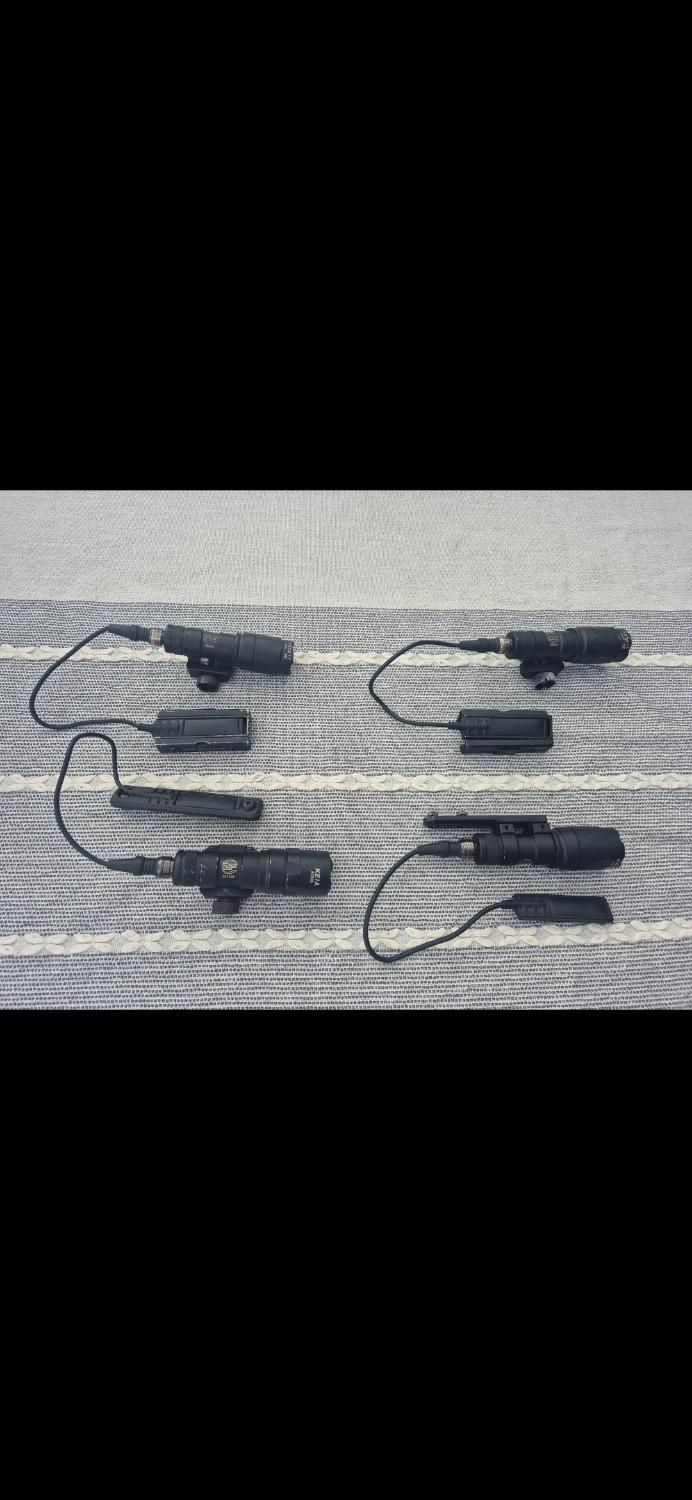 4 Repro Surefire torches. 2 with cloud defence repro mounts, and two with Mlok Mounts. £15 each or all 4 for £45