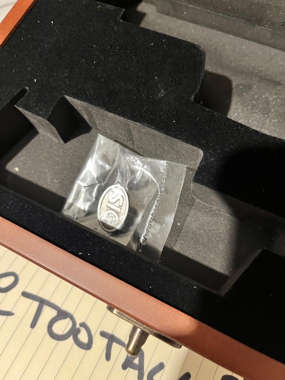 collectors model in that it comes with the wooden display case and “Sig” tie badge.