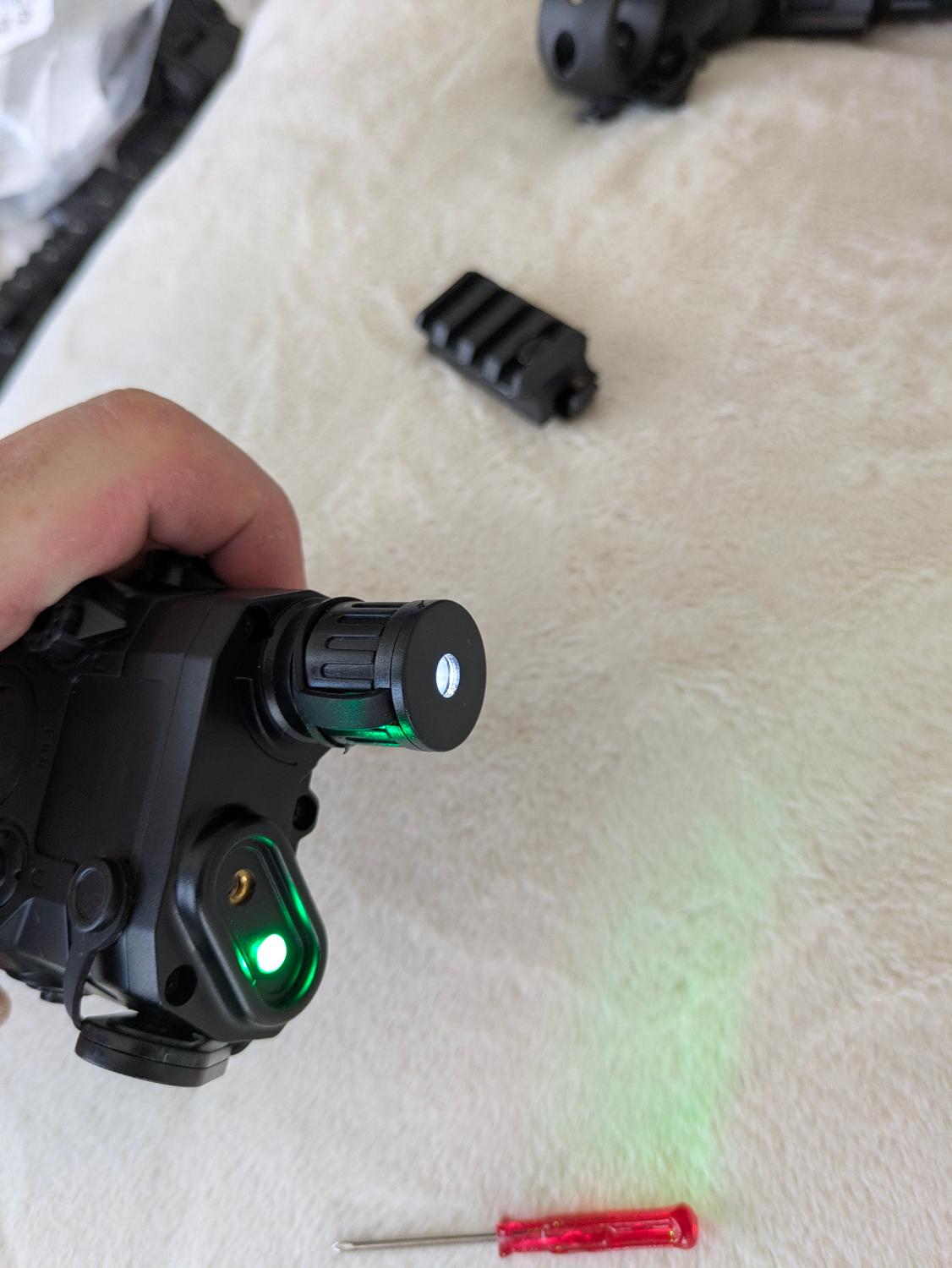 1 x PEQ Box (laser and light), brand new (note need battery and mounting band ((torch battery above fits it for info)