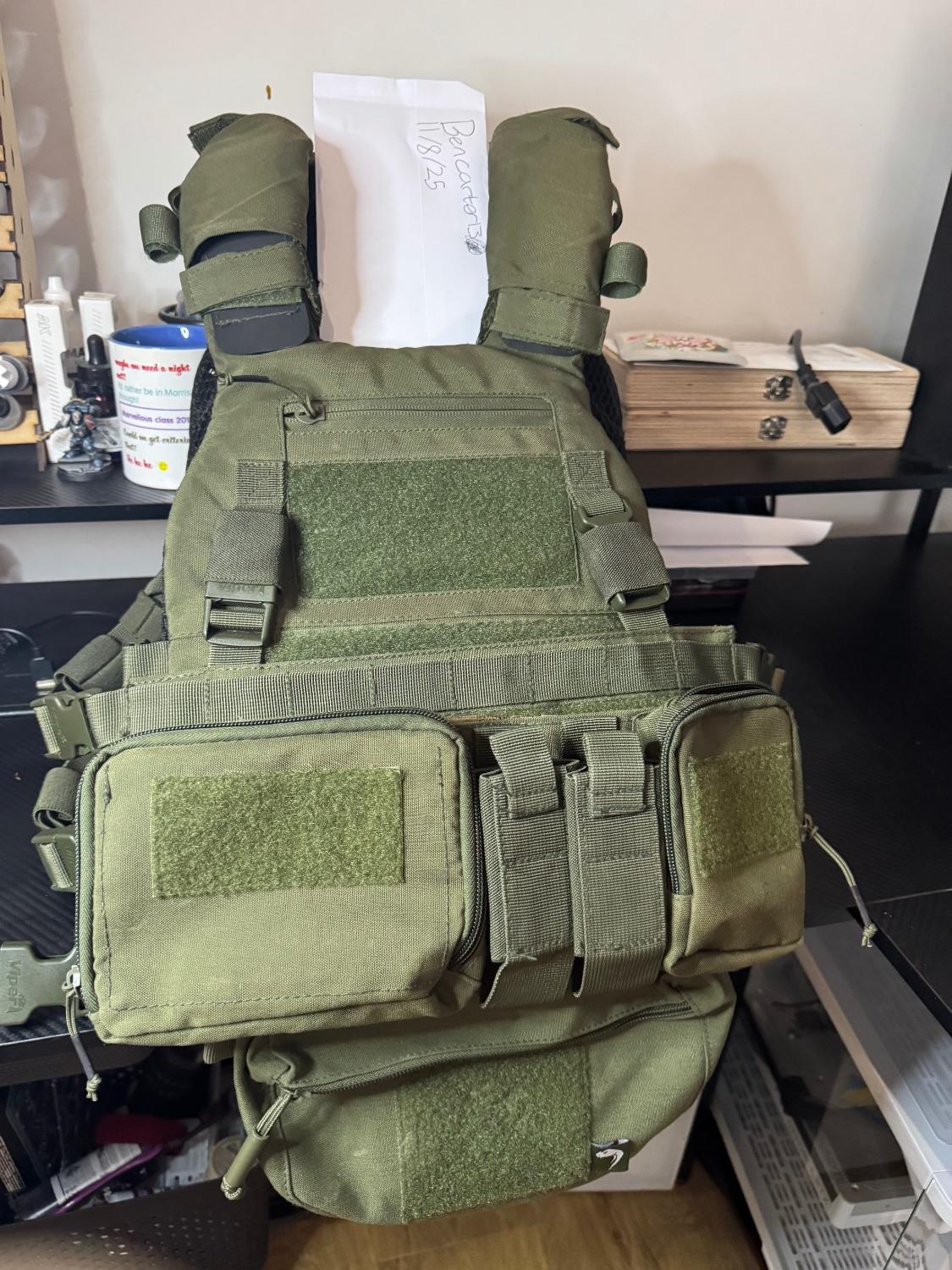 viper full green plate carrier with bag and fma tan fast helmet with fma multicam helmet cover bundle