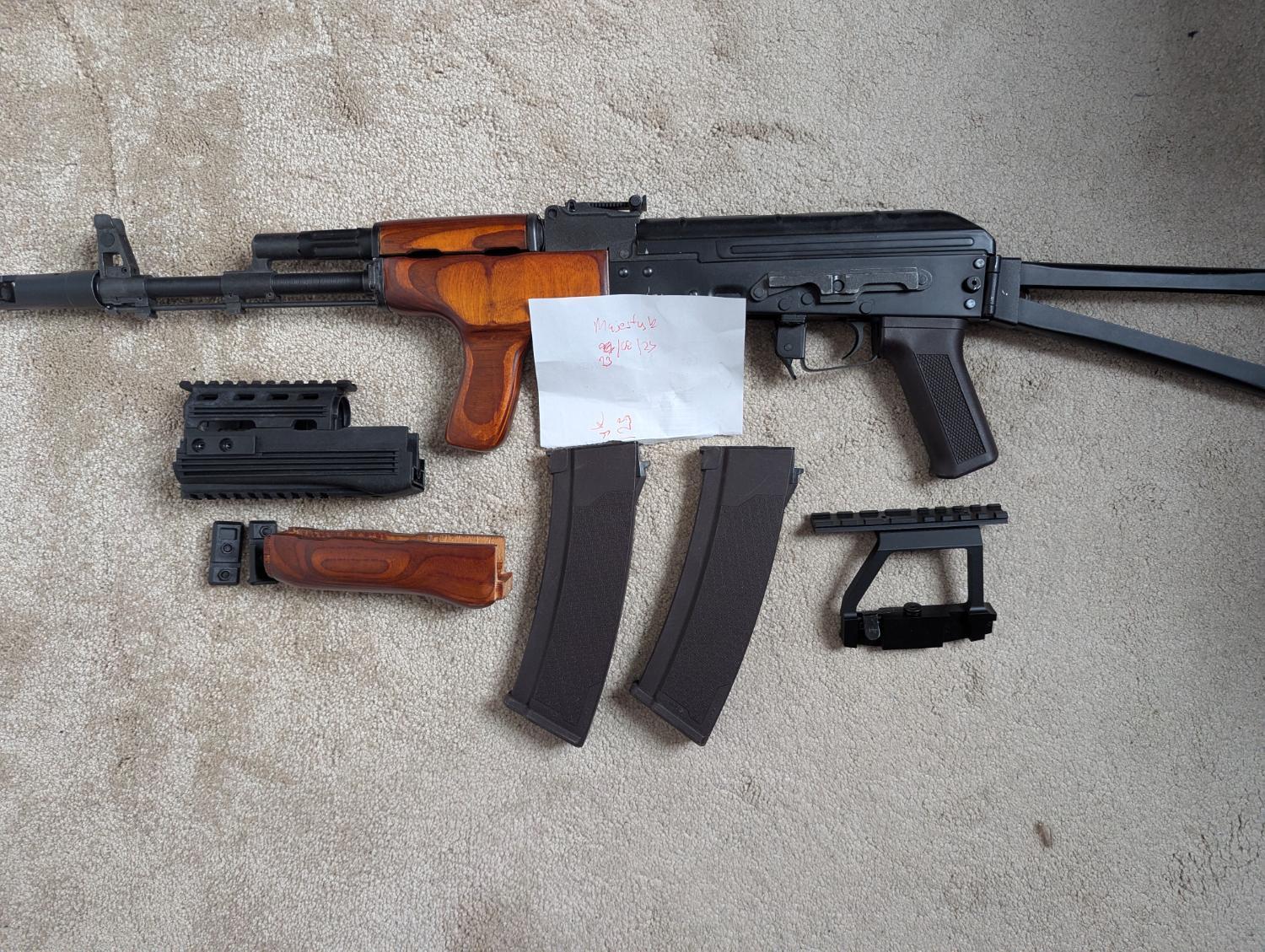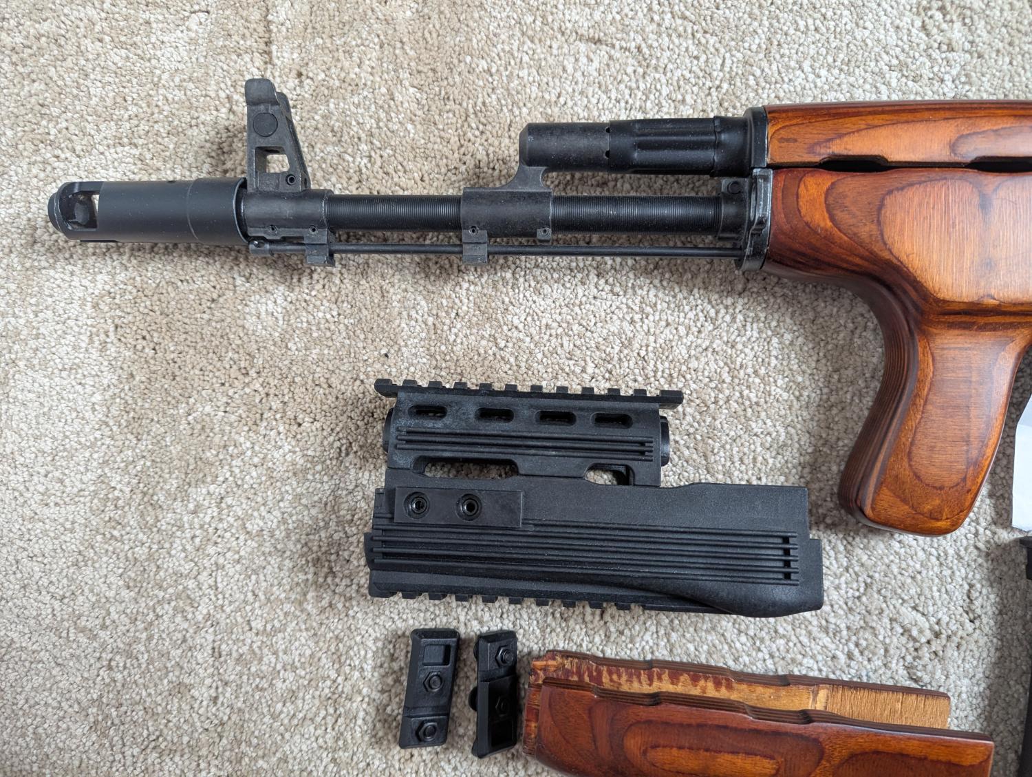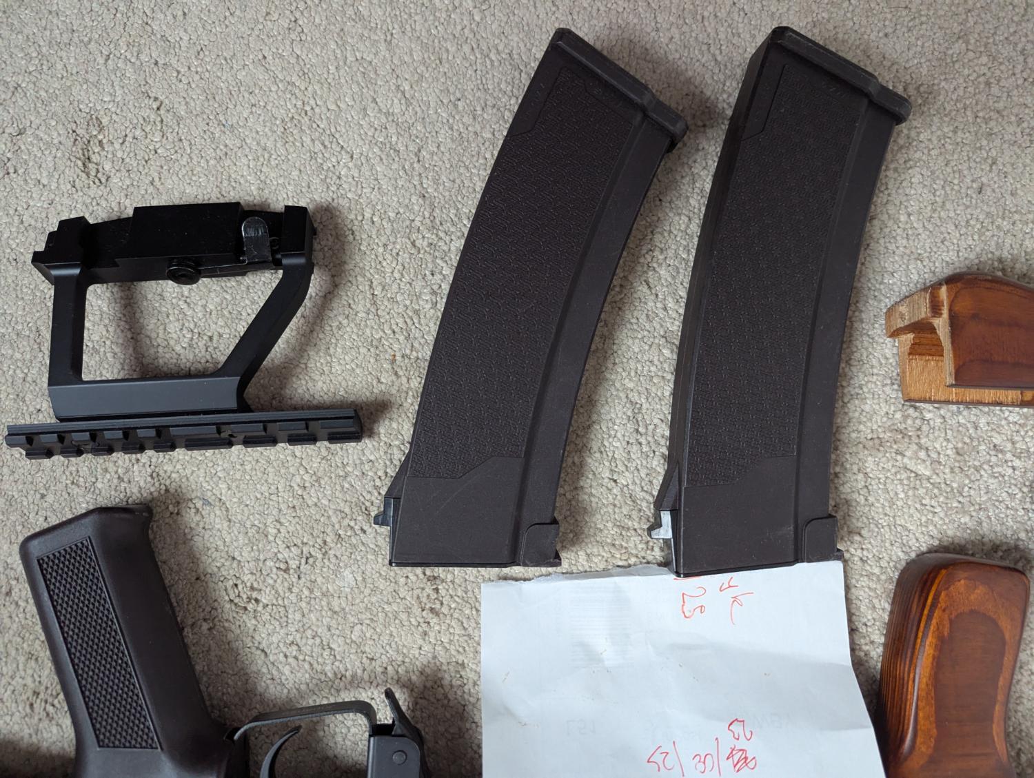 Selling as don't want this AK anymore. I got it from another user almost 2 years ago. I've never taken it out since but the previous owner has. You get everything in the picture. Wooden handguards along with the CYMA polymer ones and the railed side sight mount are bought new.