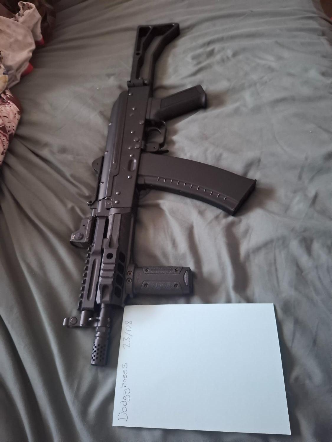Only skirmished once firing around 1k rounds. Excellent performance. Fitted with 4uantum hop nub & bucking. Comes boxed with 4 mid caps. Based in Dorset for pickup but can post. Red dot & grip not included.
