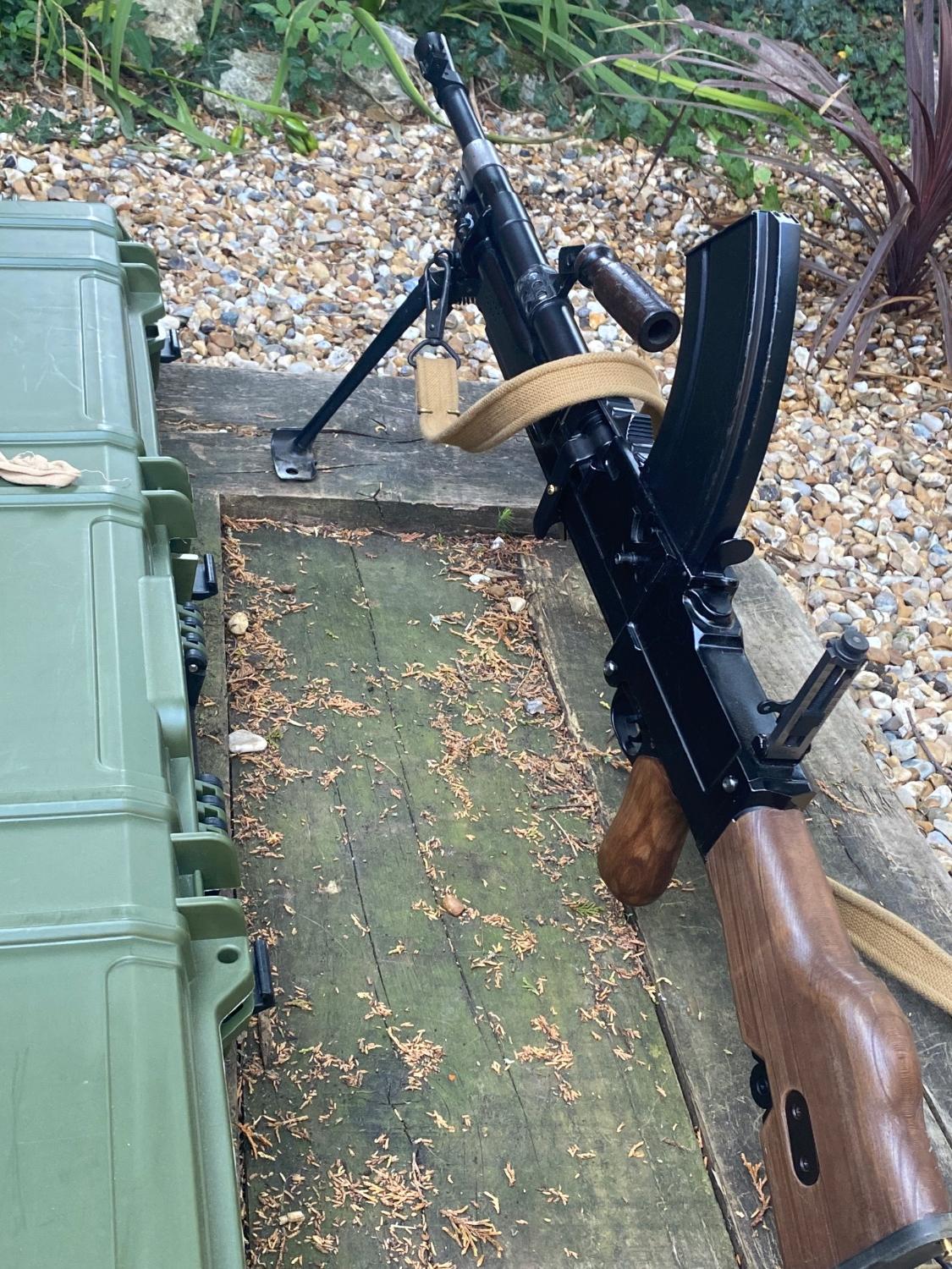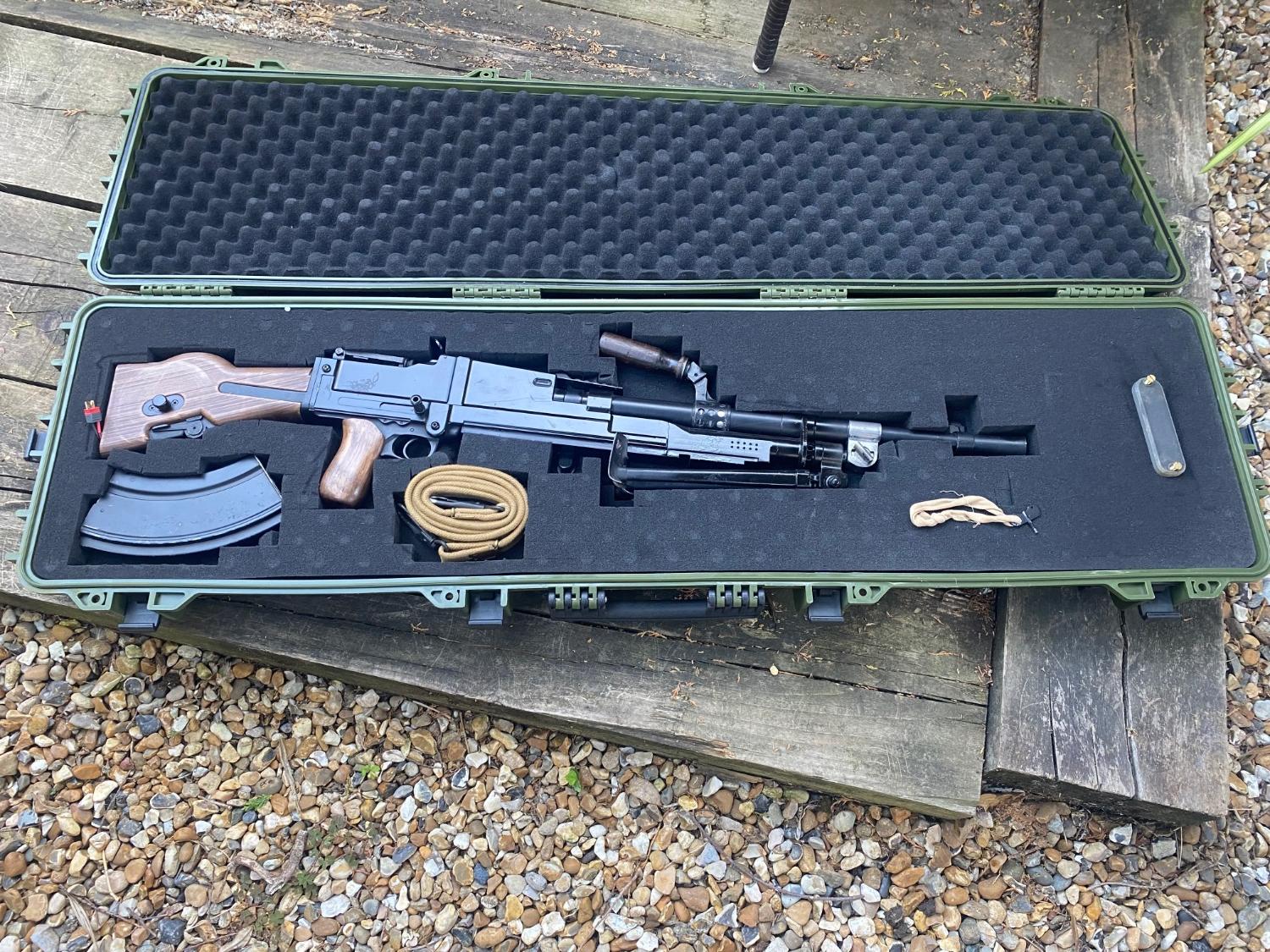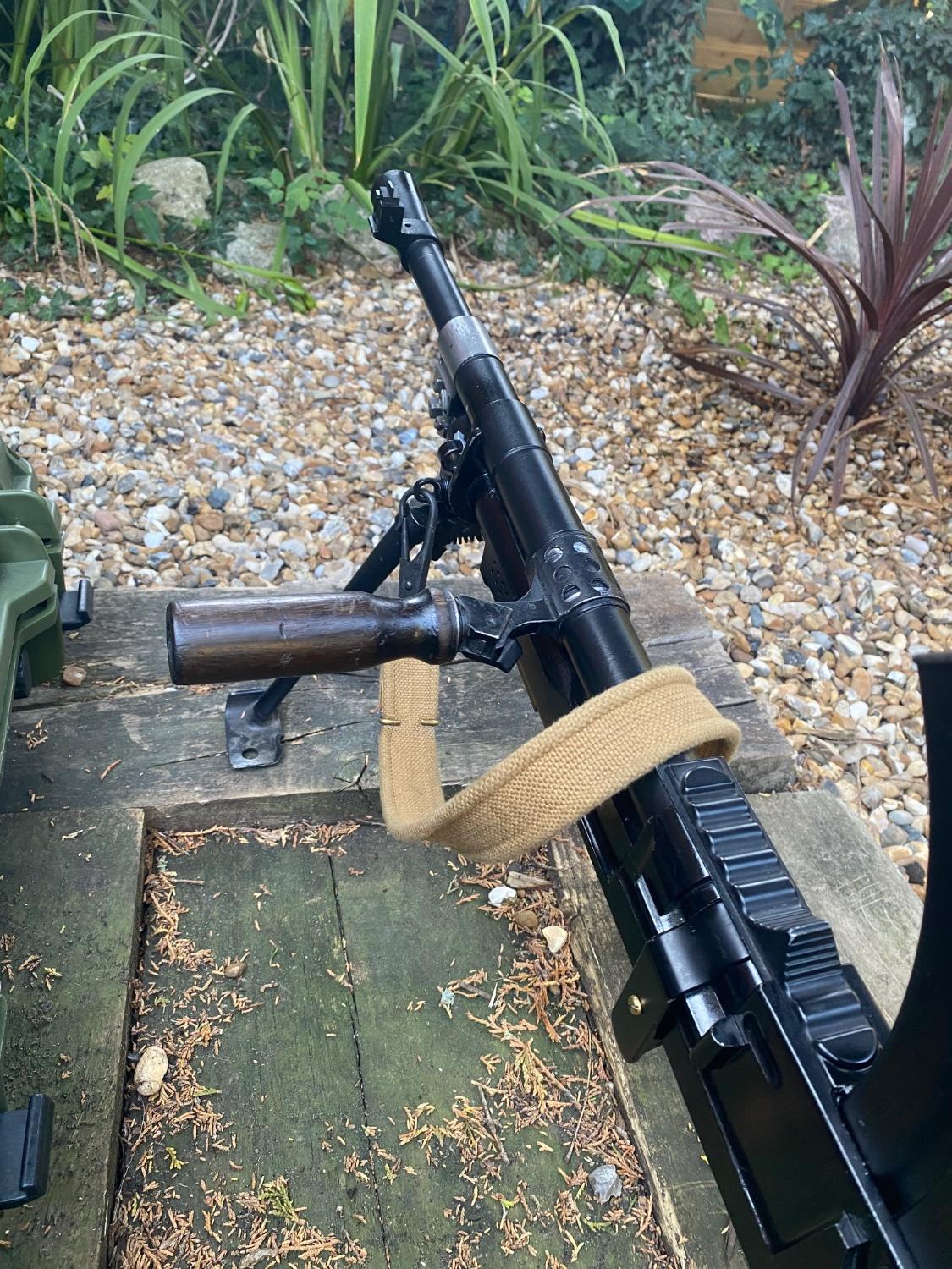original Bren parts flash hinder front sights, gas block, pi pod, fully working carry handle, sling swivels , ( new sof sling ) magazine has ZB26 winding system fitted inside and breech has been modified to fit (790 BBs filled through small hole in top of mag )