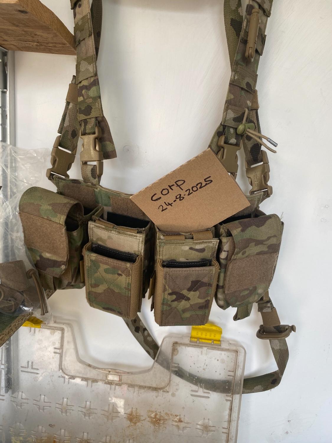 WAS Pathfinder Chest rig comes with M4 inserts for fast and secure mag change. Also has original elasticated tabs. Holds 4 mags in inserts, 2 Elastic m4 pouches and 2 side Utility pouches.