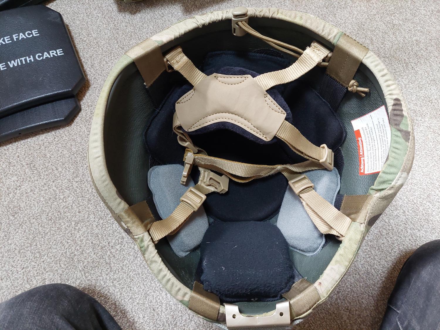 - MICH (I think) helmet replica, fiberglass, pretty solid, suspension harness replaced, genuine helmet cover + elastic band - £50