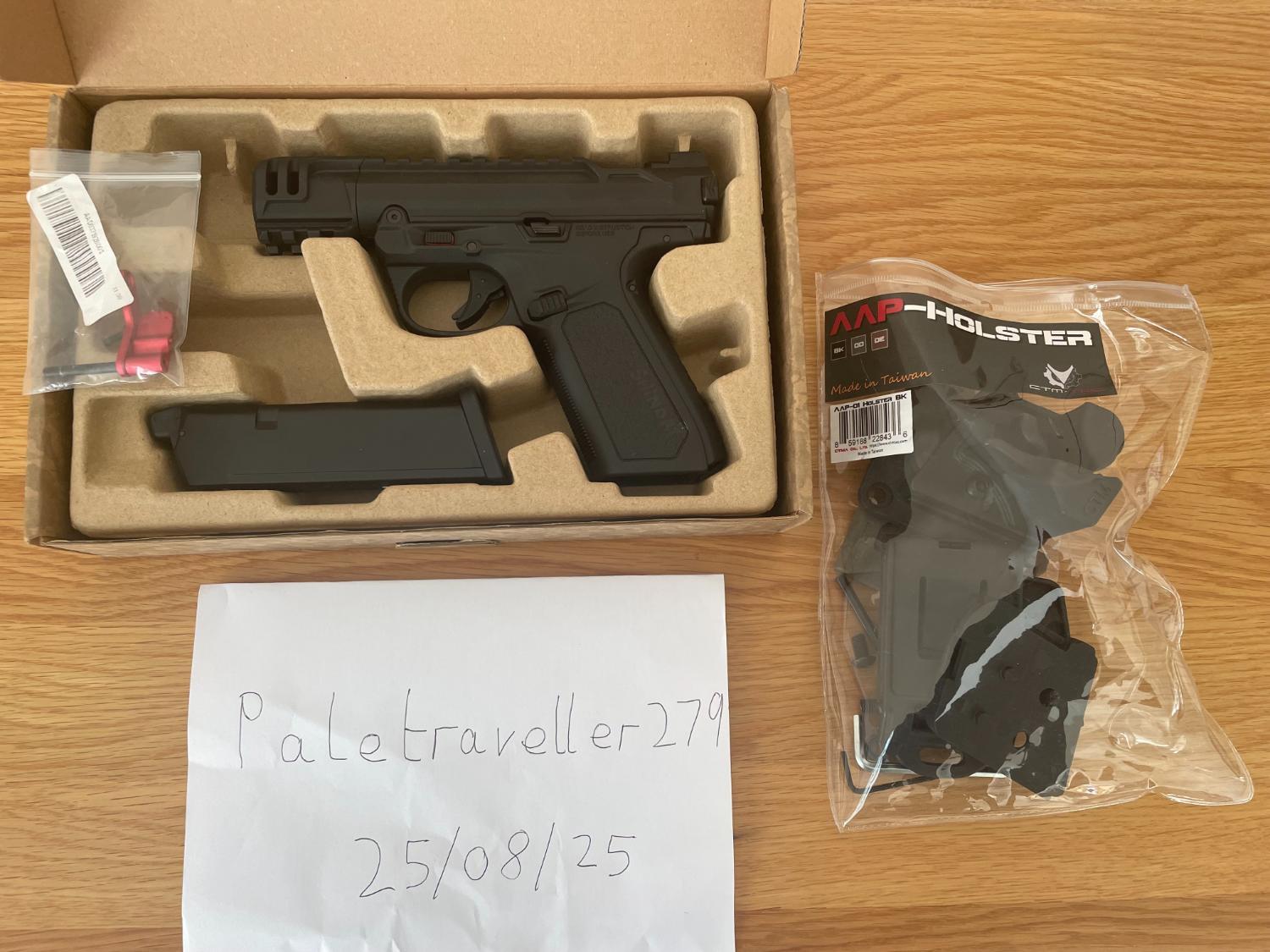 AAP01C, CTM Tac holster, Tridos Thumb rest. All items new, holster opened. Bought for use as a sniper sidearm but due to arthritis remains unused. Can 3d print a chosen kit at cost. £5 postage.