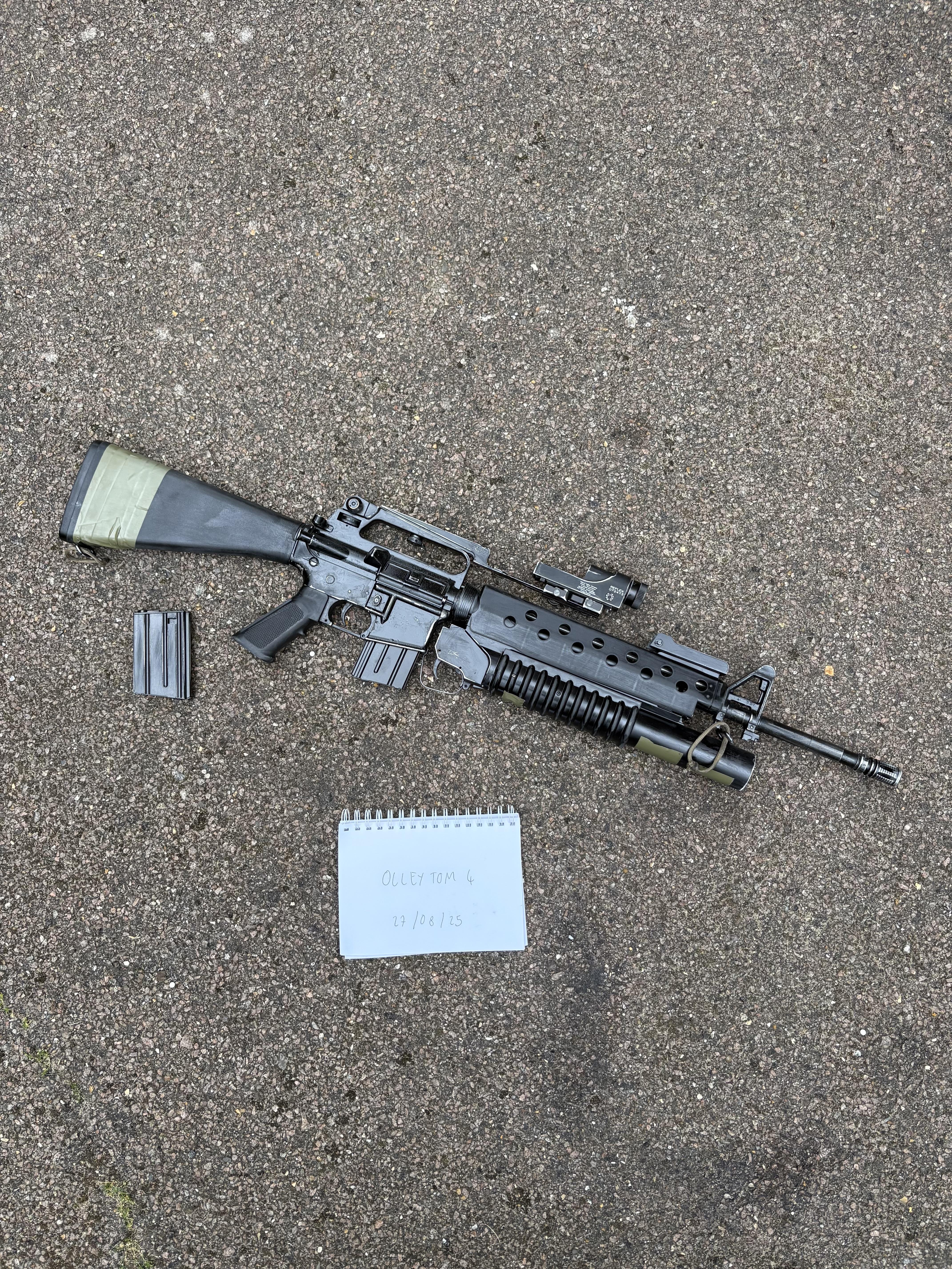 The M203 is made by Double Bell, and the handguard by E&C, the Red Dot is an RX 06 with the classic ‘goose neck’ hand guard which I made myself, additionally the RIF will come with two ‘VN’ style midcaps, but no Moscarts as they are needed for my GP30, the rifle will come in its original box with its original M16A2 handguard, a handful of goodies!