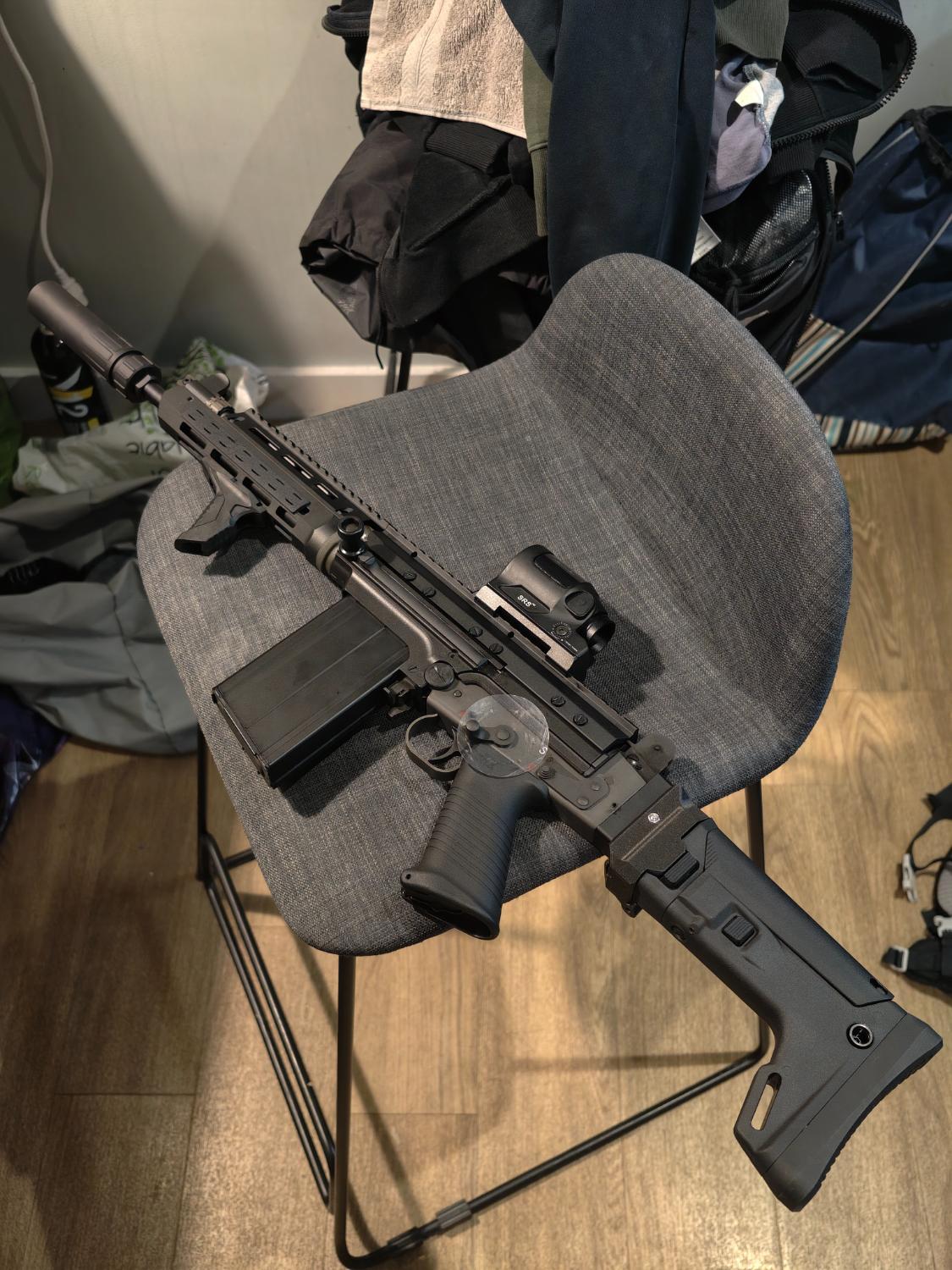 VFC FAL OSW GBBR comes with osw stock adapter, ACR stock repro and 3d print adapter, Handgrad grip and cover, SRO red dot repro, DD suppressor. And its original muzzle and stock. Asking for 620£