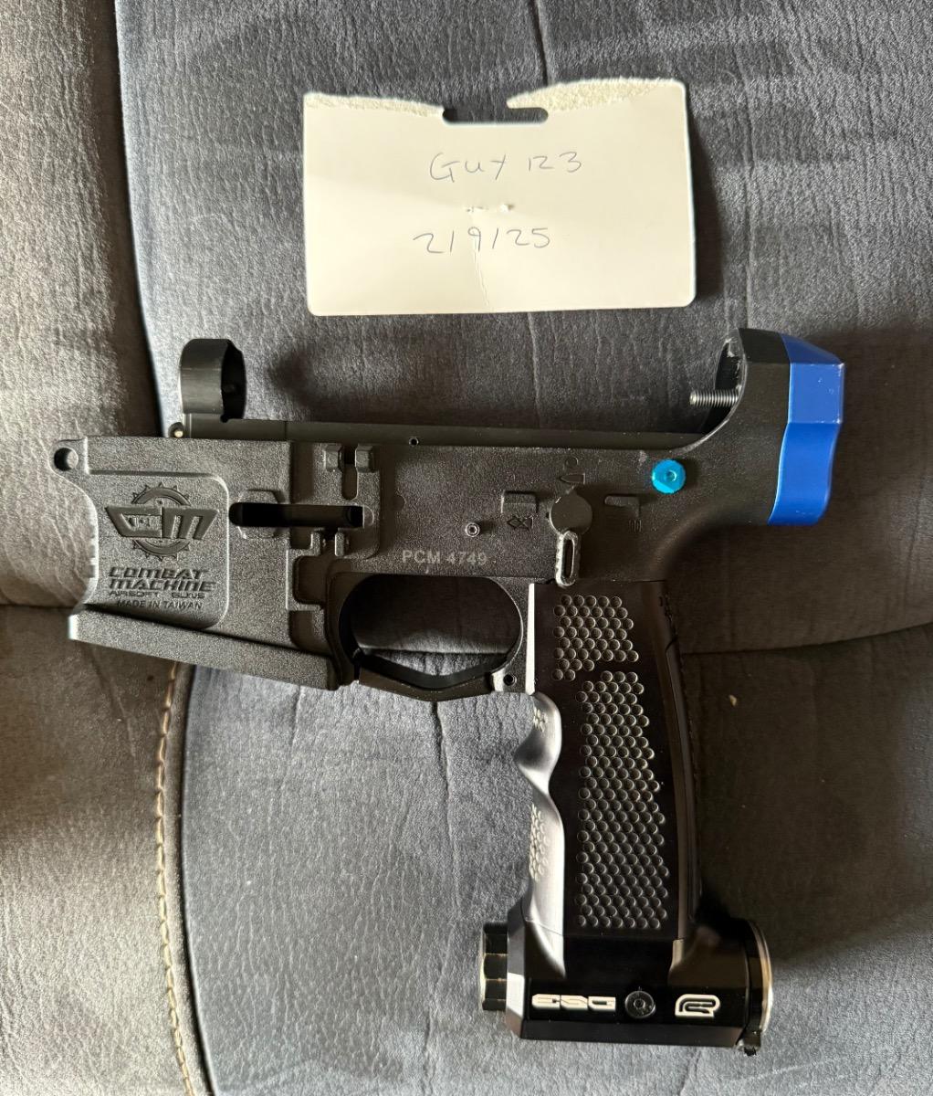 The advert is for an AirTac 128mm carbon fiber upper, it had the rear site shot but the fibers have been glued back on as pictured. An AirTac hpa gearbox. Monk ESGR grip and a G&G combat machine lower with AirTac body pins, end cap and retro arms gear box pin.