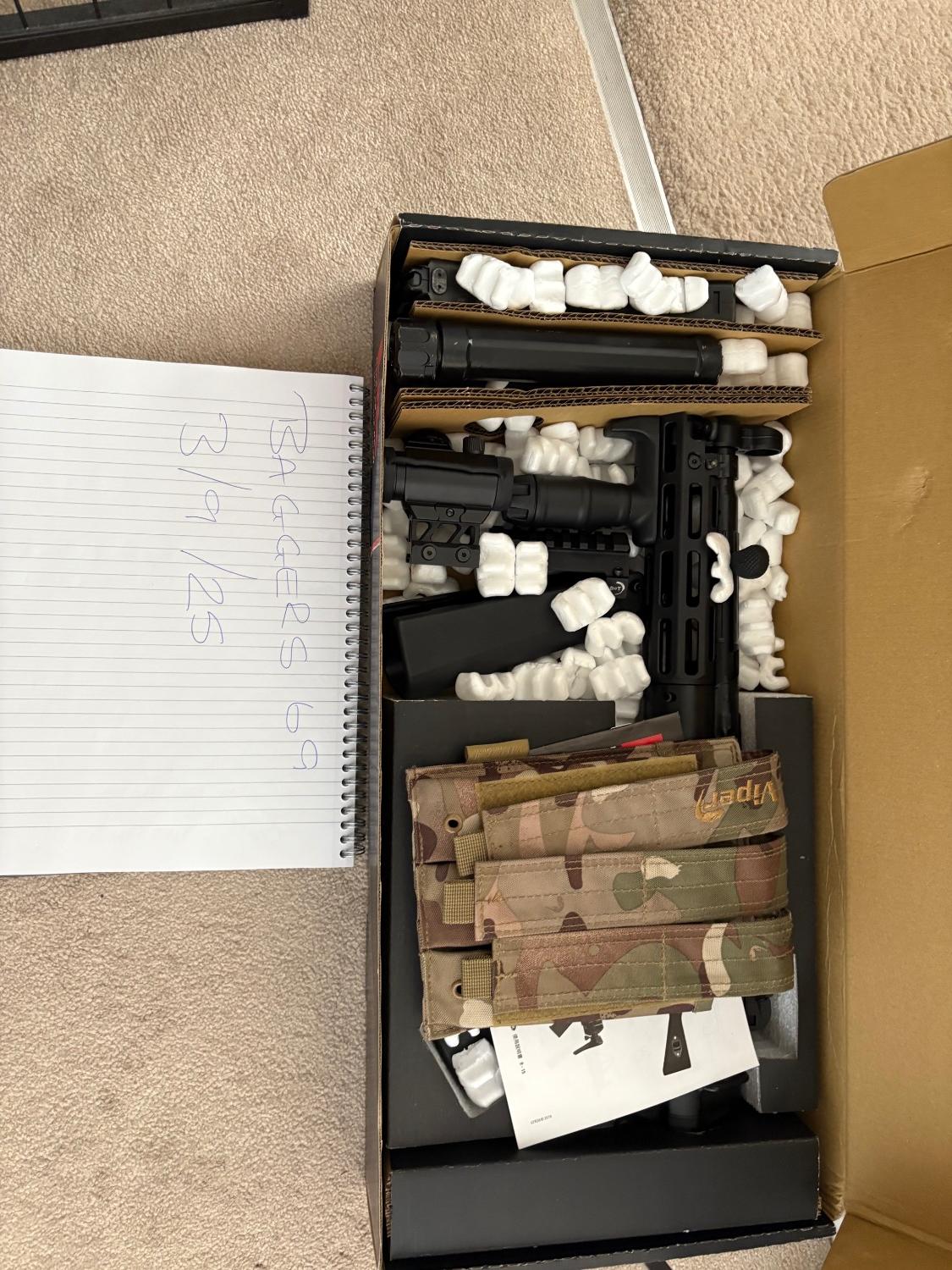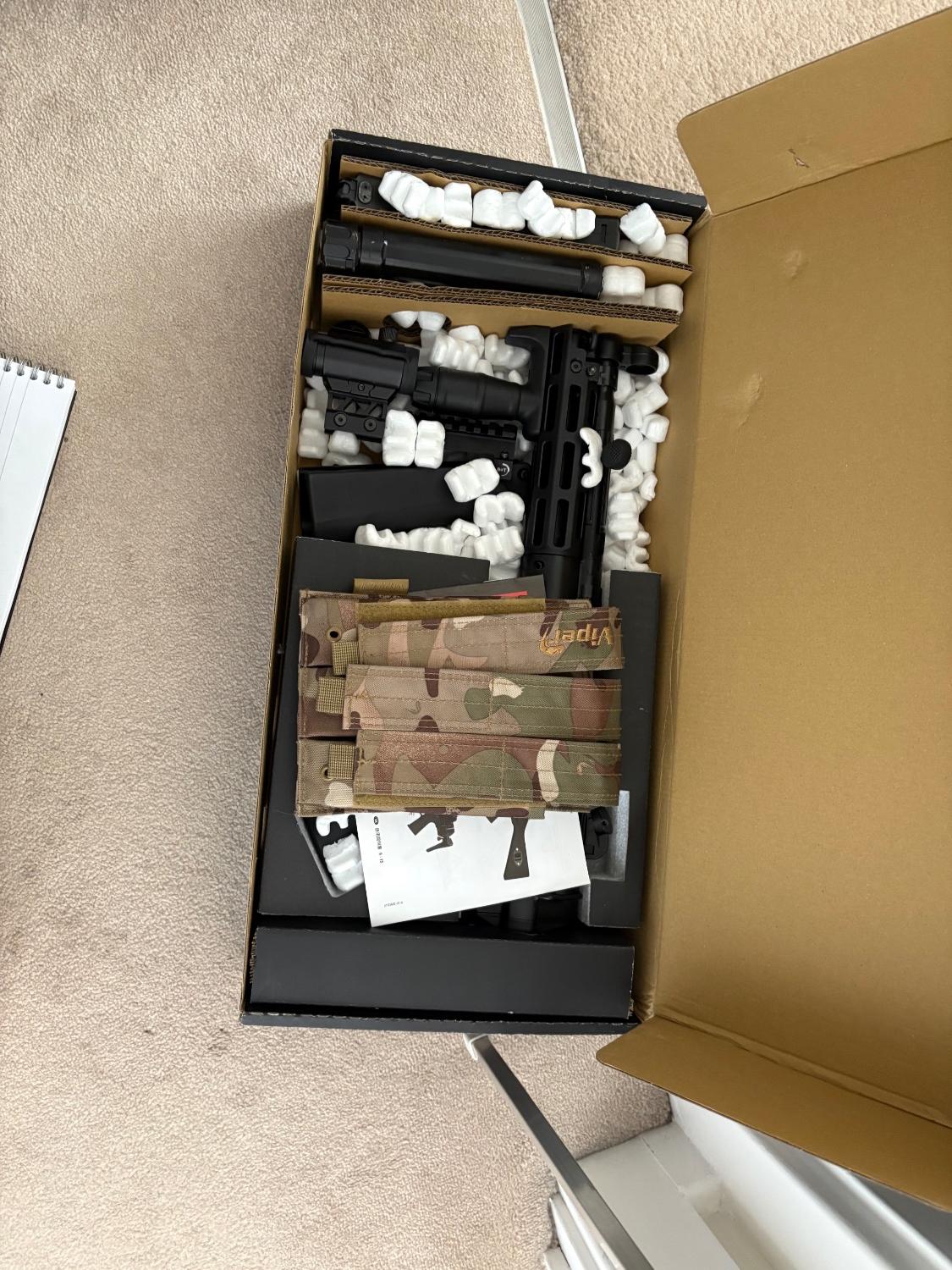 3 x gas tight magazines, feyrachi red dot, tri lug suppressor, Mlok hand guard, mlok fore grip, claw mount, viper magazine holder
