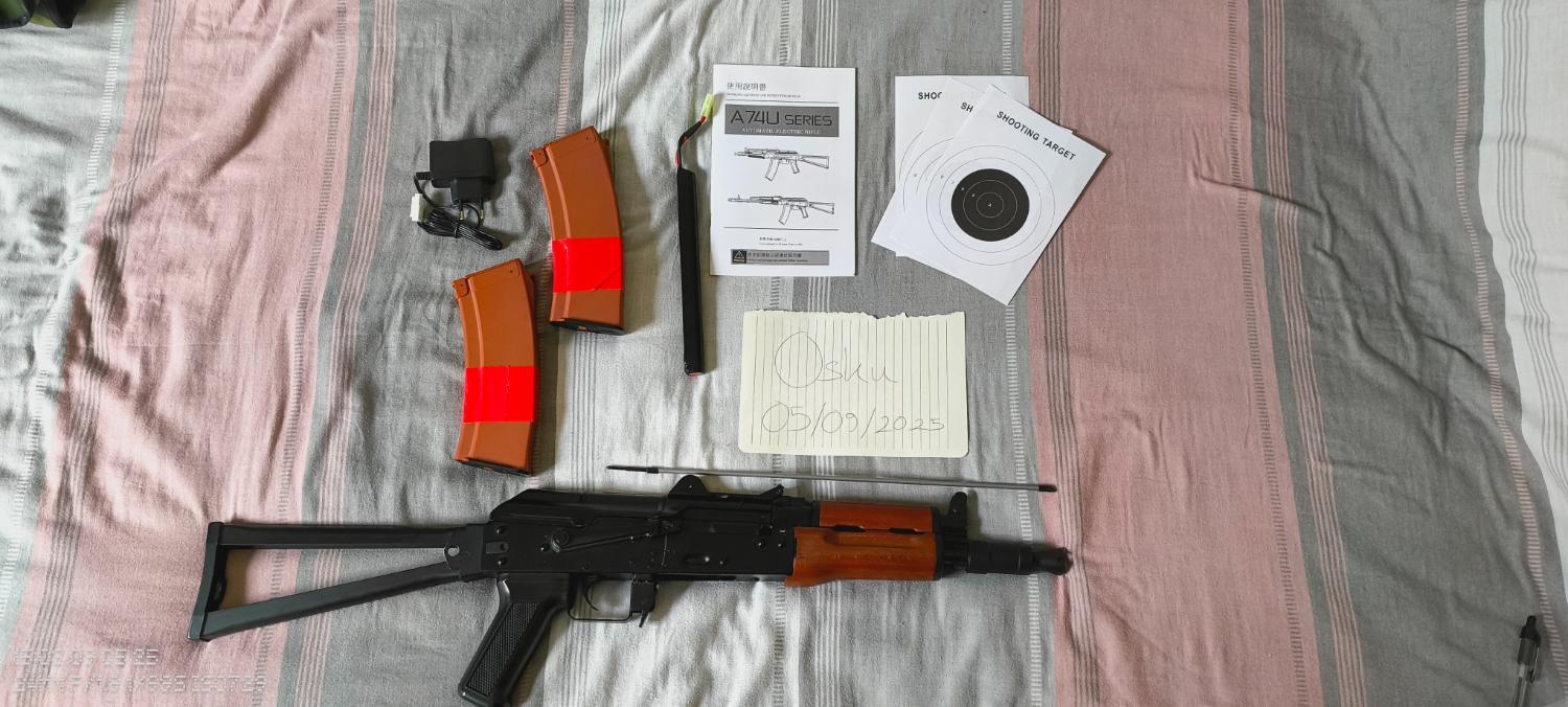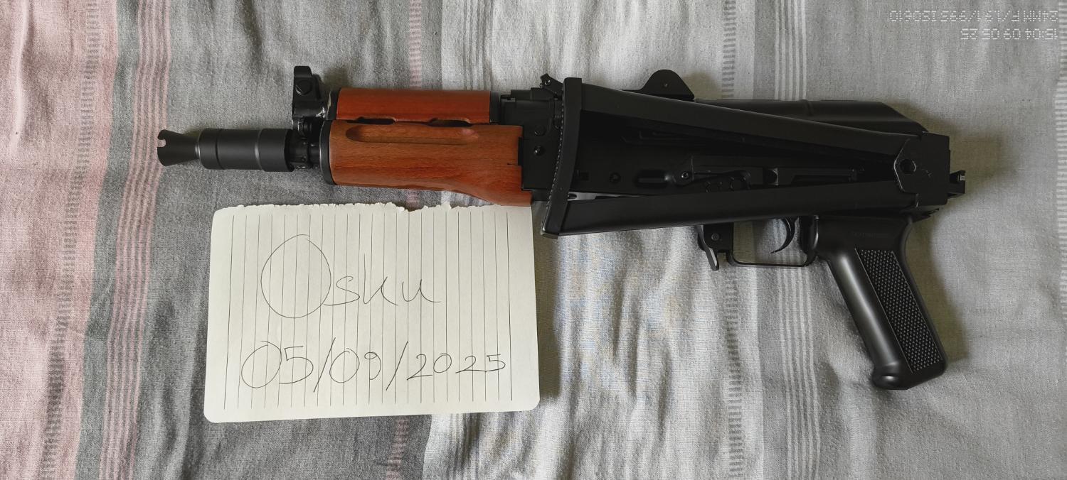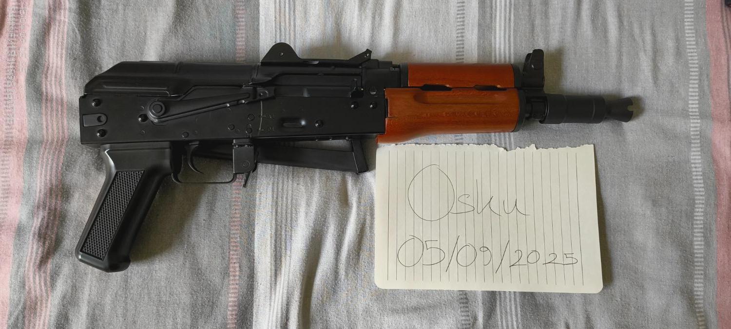 Selling my JG AKS-74U EBB. It shoots well and chrono’d around 340–350fps on Delta Armoury 0.20s, cycles fine and is sort of usable as-is, but the selector is worn and will need replacement/shimming ASAP for proper reliability.
