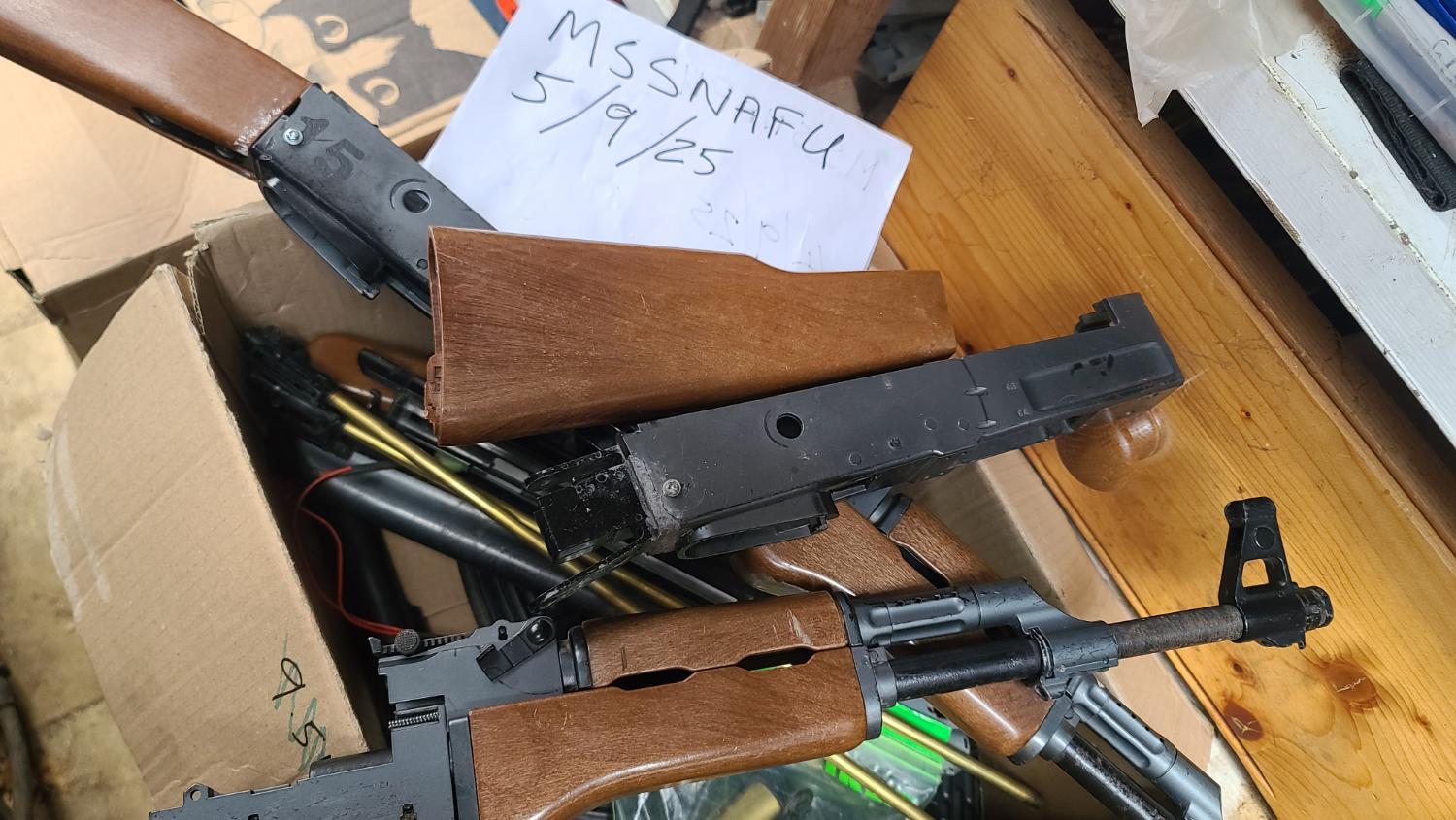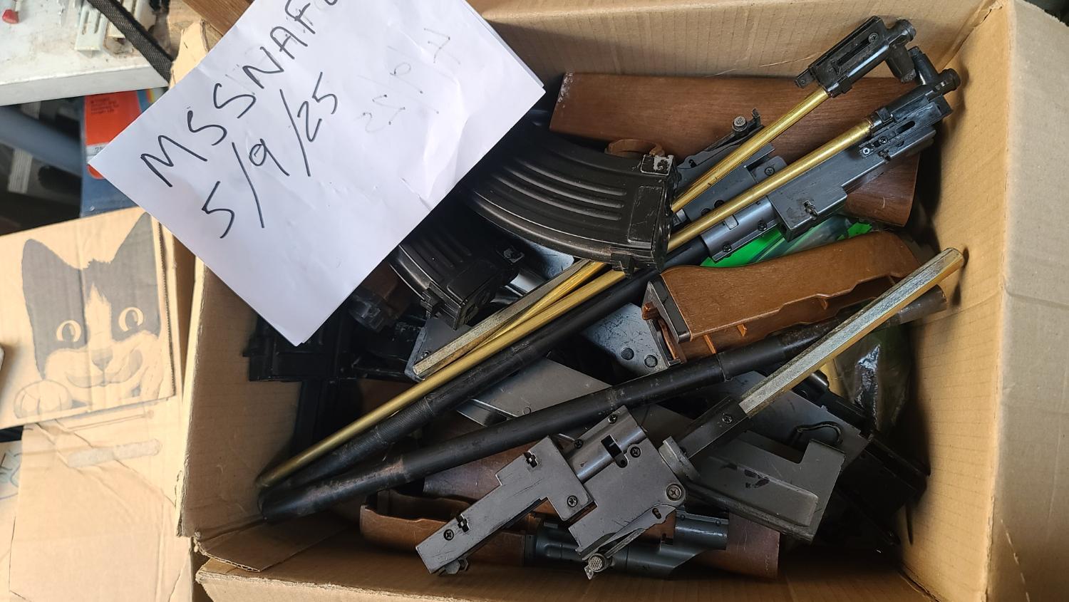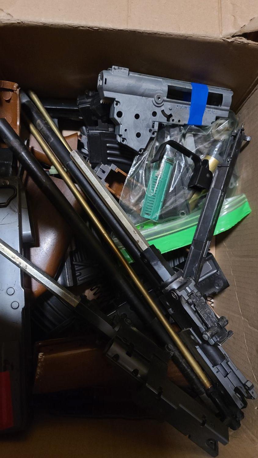 Box of Cyma AK used parts for Spares or Repair, everything you see in the box incuding a complete gearbox. Note some of the parts are damaged, for example the plastic body sections . Weight just under 8Kg.