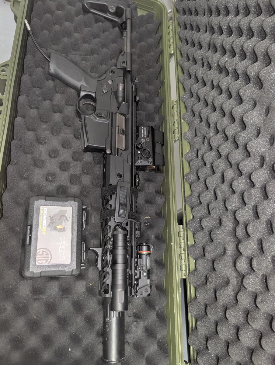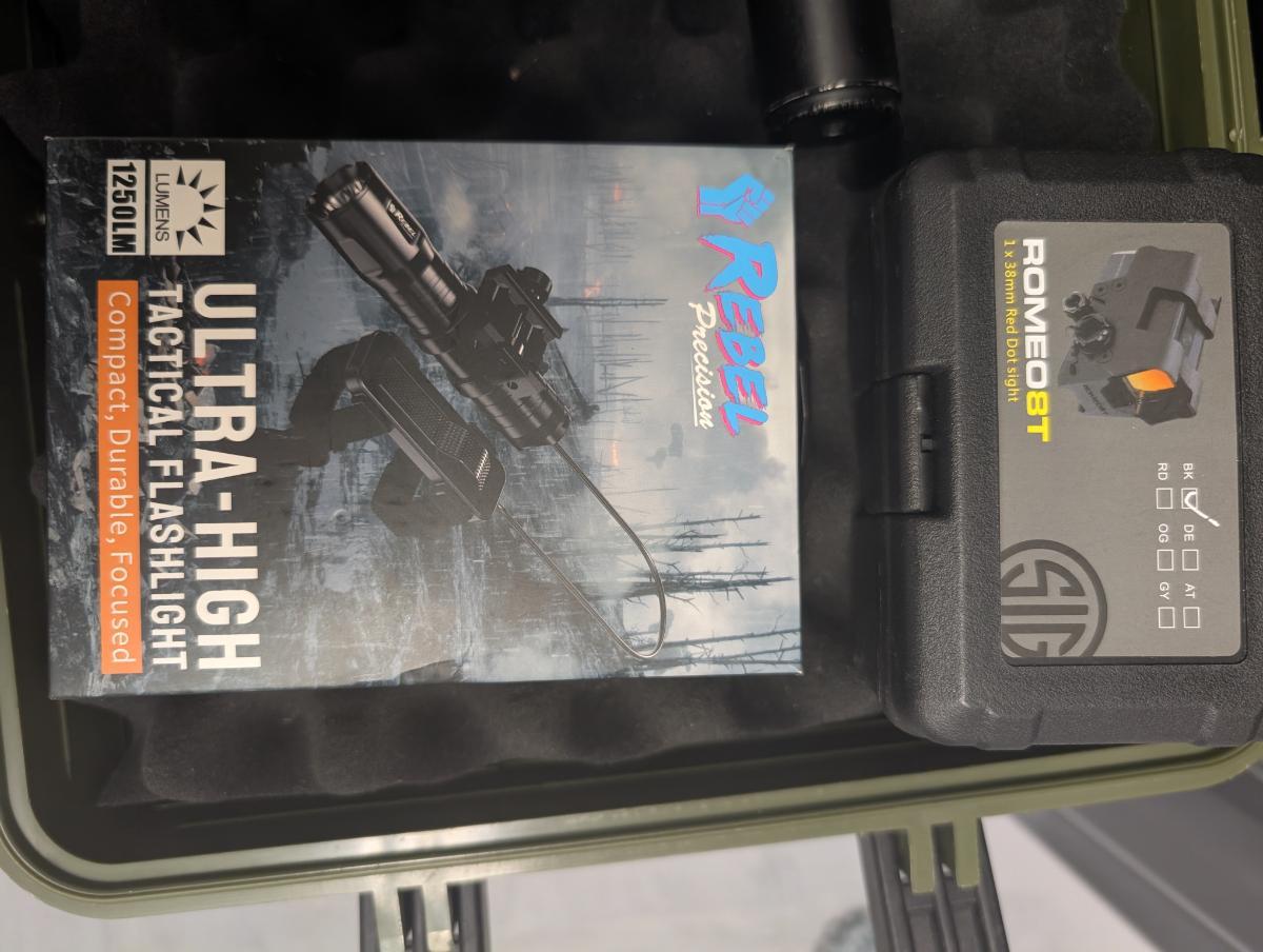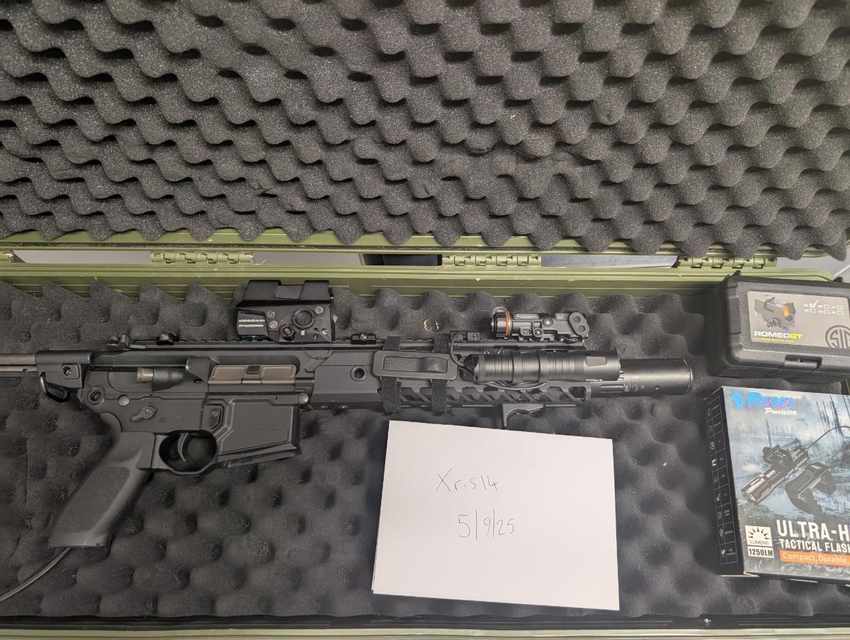 £650 for just the rifle or £800 with all attachments (Romeo 8T Red Dot - Rebel 1250lm torch - Peq box with button - sling points - Handstop Grip)