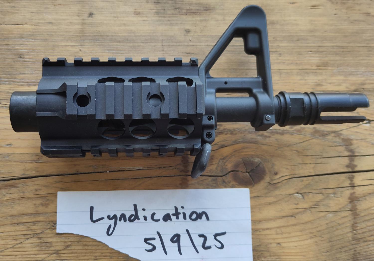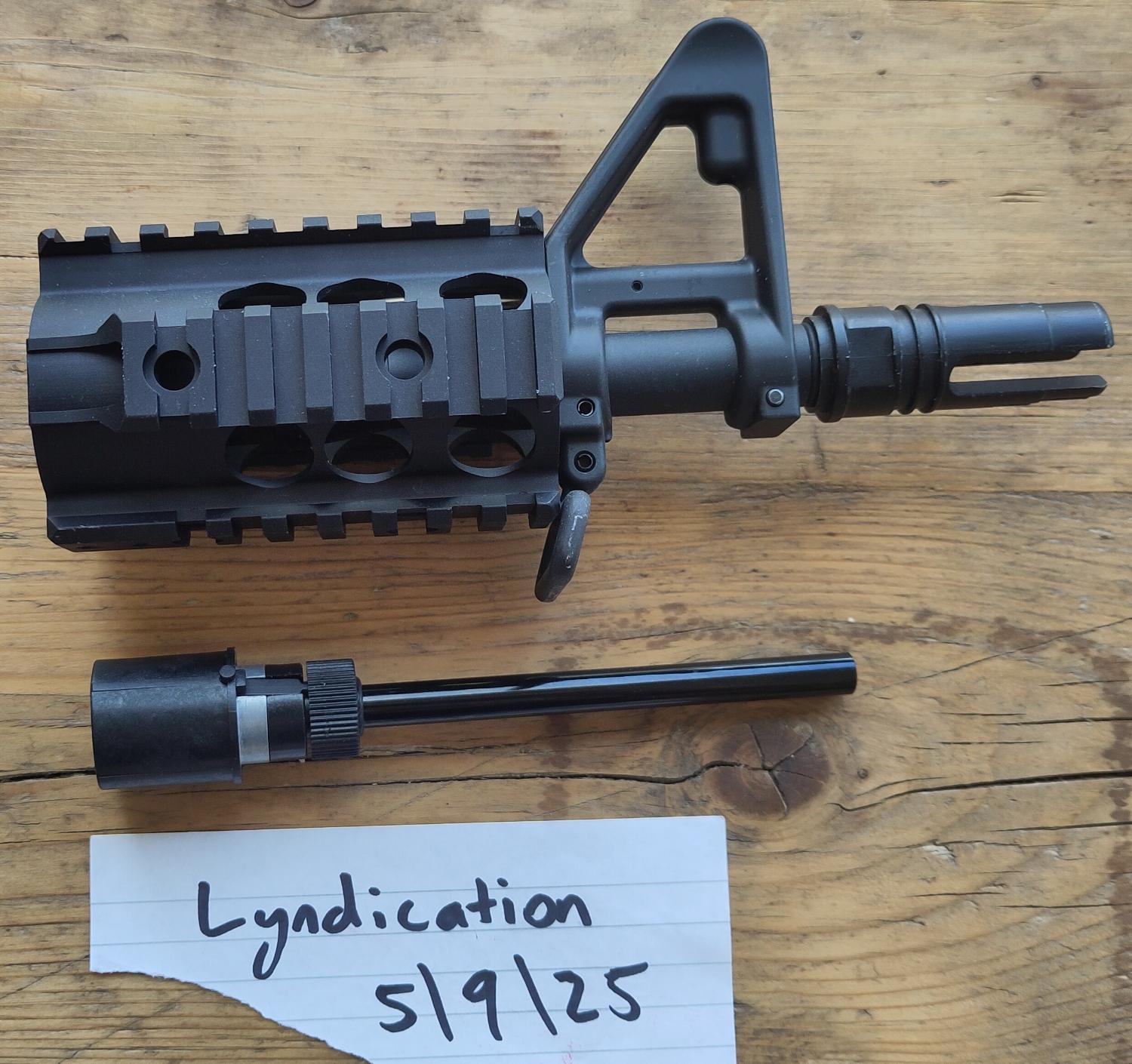 Basically everything forward of the receiver, ready to screw onto a VFC upper receiver. This is the shorter baby carbine furniture that comes on the VFC Olympic Arms gun.