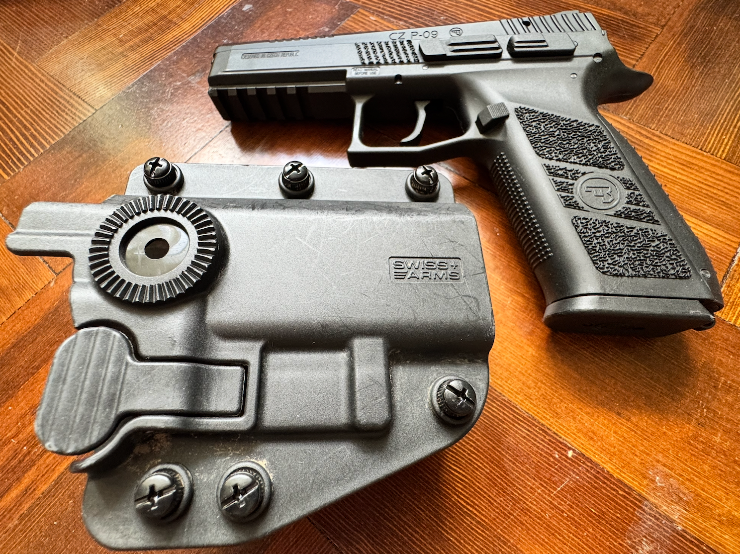 - Swiss Arms universal holster, which costs £25 new https://www.justbbguns.co.uk/swiss-arms-adapt-x-universal-polymer-retention-pistol-holster/