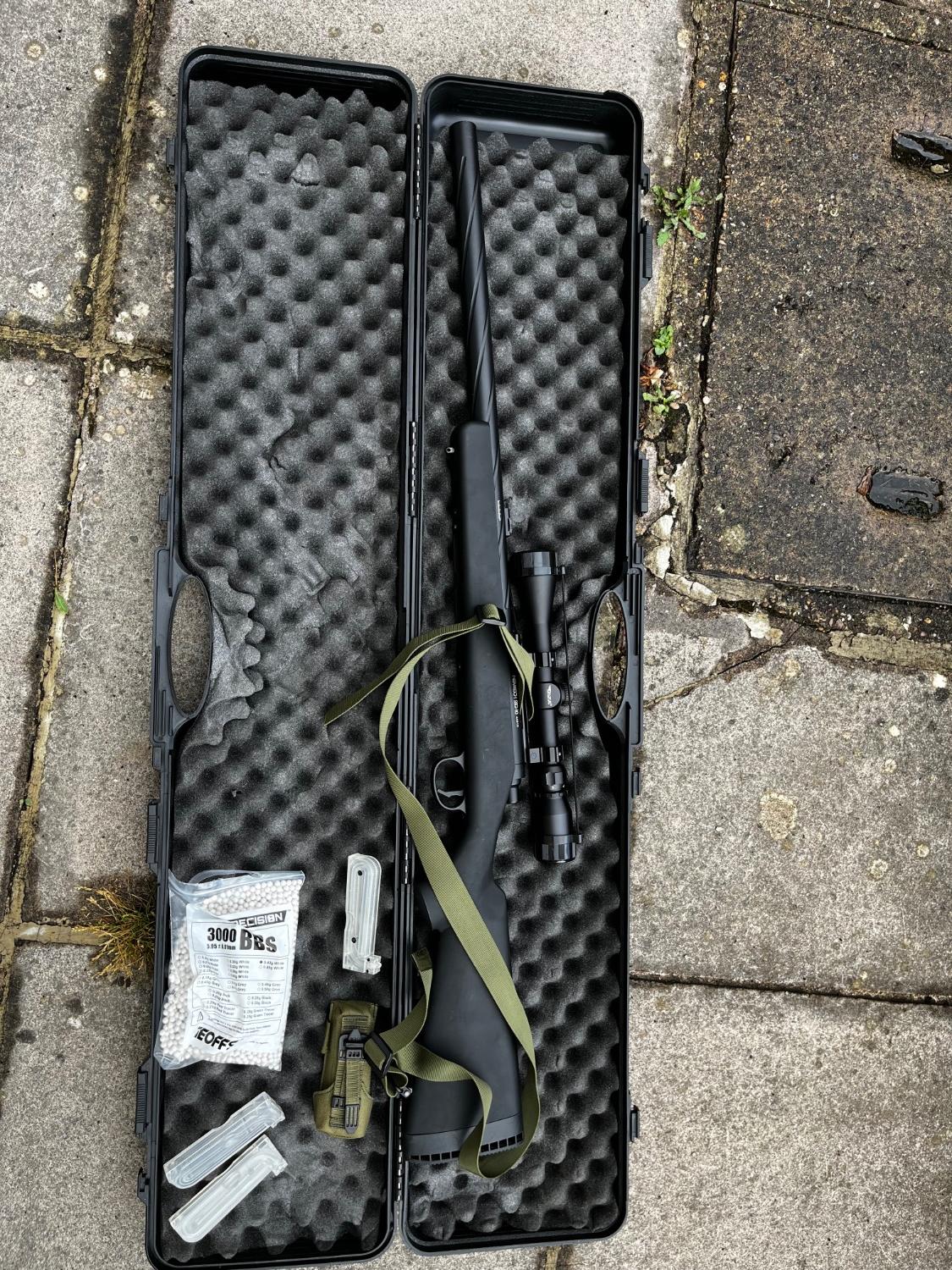 Ss10a1 with BSA 3-9x40 scope, tridos tdc 2.0, maple leaf 70 deg mr hop, 3 mags, 1 mag pouch, nov sling, gun case, bag of 0.43g geoff bbs (barely used). Looking for collection only from cheltenham GL52, for £210. Message if interested.
