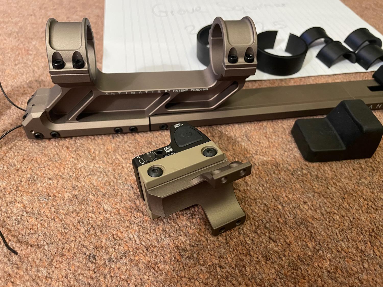 Selling my scope switch with RMR as looking to change over from a DMR build to a sniper. Included is an RIS adapter ring to allow for dot sights to be mounted above scope.