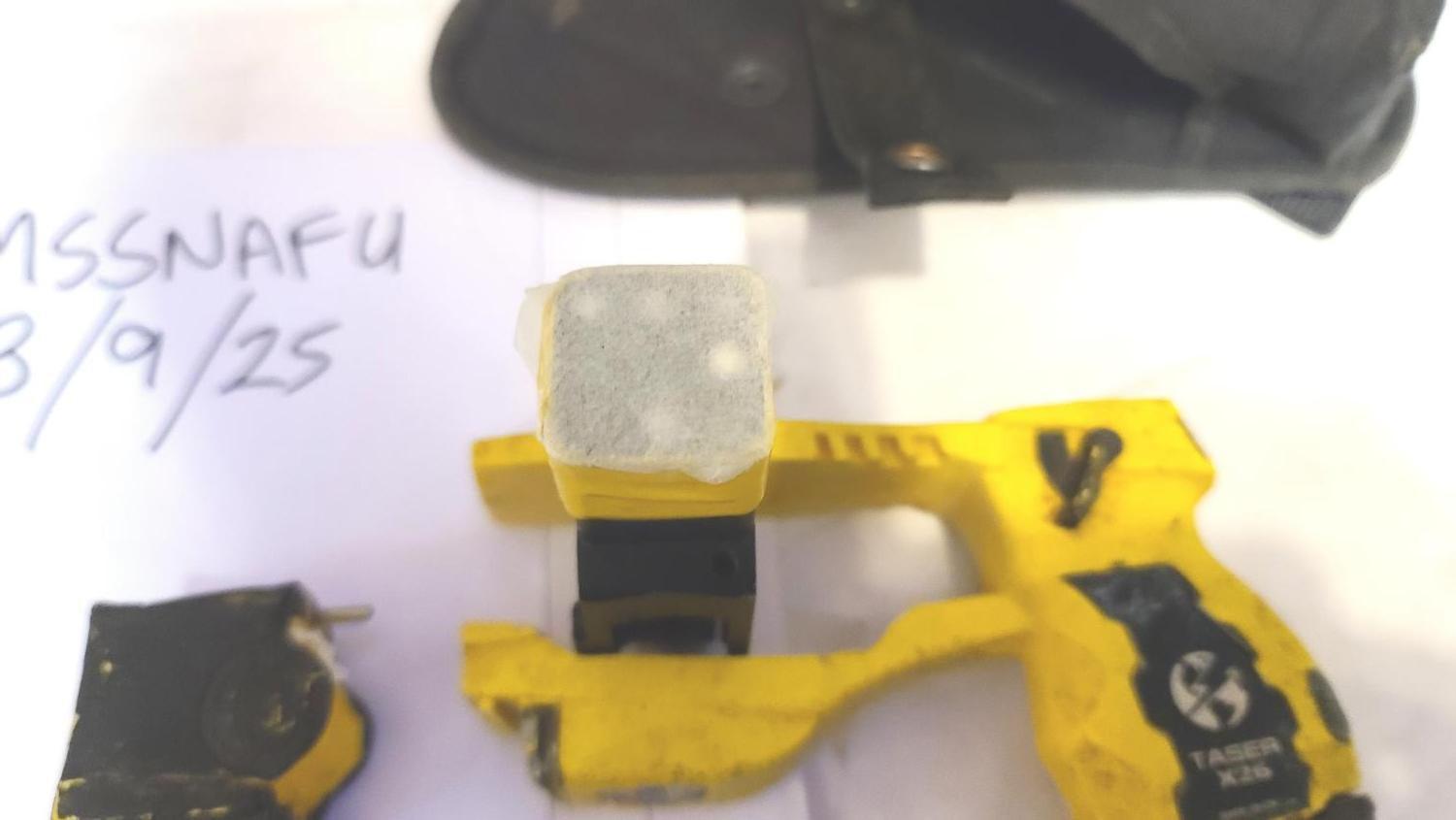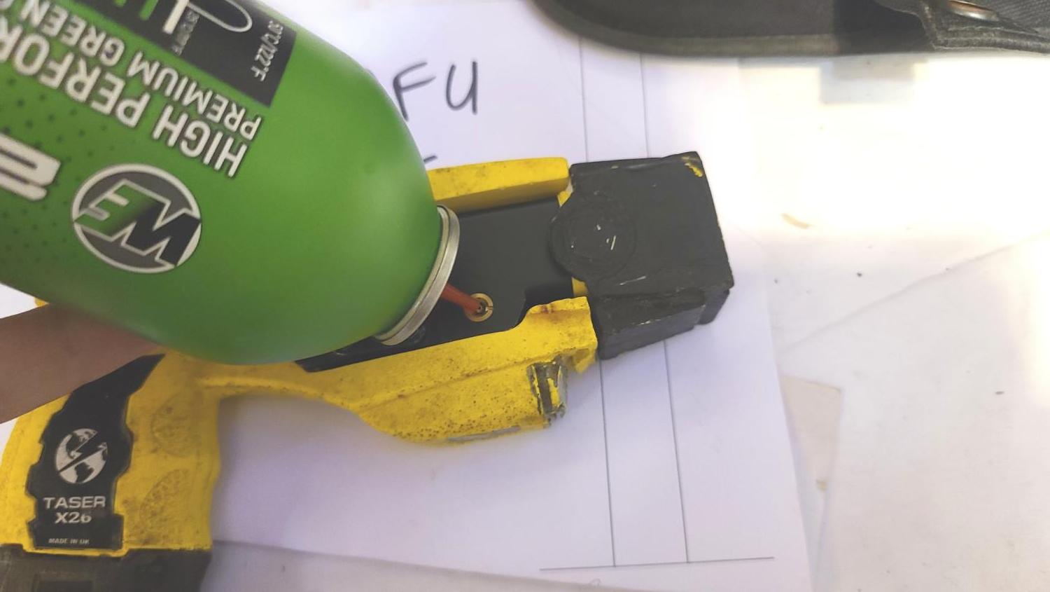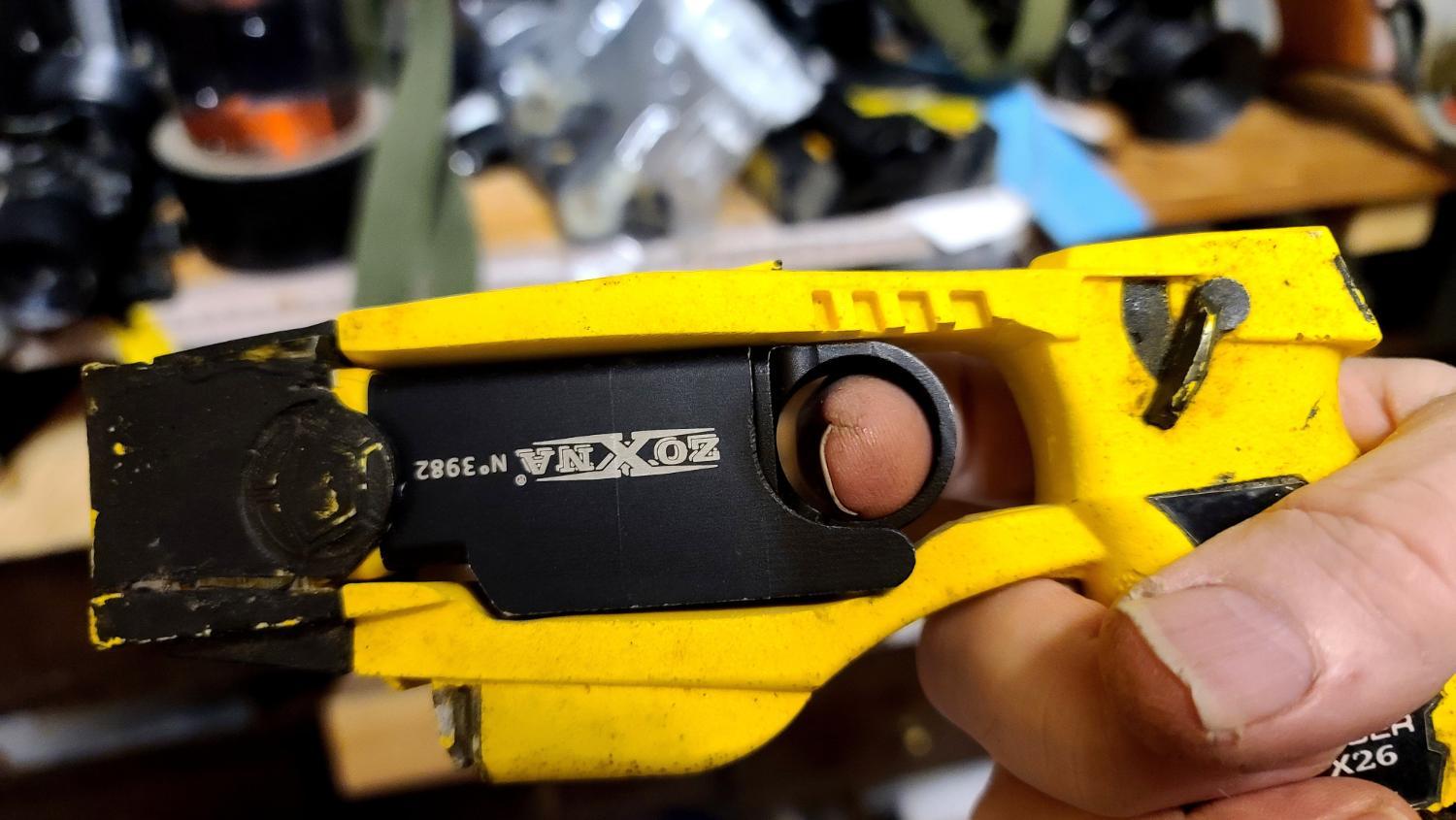 Originally this was a solid resin casting of an X26 Tazer, as used by HM Police, obtained from Etsy. (Its not a very good quality casting or paint job btw!) I bought it from a guy who was emigrating. Eventually I got around to modifying and hollowing out parts of it, so that my virtually unused little 24 BB lancher could fit into it. On red gas it will nearly send the shower out to about 5 metres, if you angle it up enough with the wind behind you 🙃. If you are able to sneak up on one, the look on the face of a player who hasn't seen it before when you shout 'Tazer! Tazer! Tazer!' at them, just before giving them a low velocity bb shower is priceless! 😄 I'm not really mobile enough to get the drop on someone any more, and like most BB launchers the range is pretty poor, so its time to pass it on. Someone with a Police or Security services build should be able to have a lot of fun with this 😁It comes with the two holsters pictured.