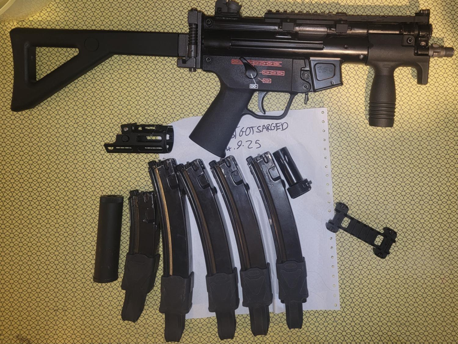 We apache mp5k, fully working and in great condition. Has folding stock, tri lug with 14mm ccw thread as well. Maple leaf bucking installed. 4 long mags, 1 short mag. All gas tight, feed perfectly, all have magpuls on. The short mag, doesn't lock back on empty, the rest do. Original handguard, mlok handguard, claw mount small, claw mount with mlok on top and a suppressor. £440 all in posted