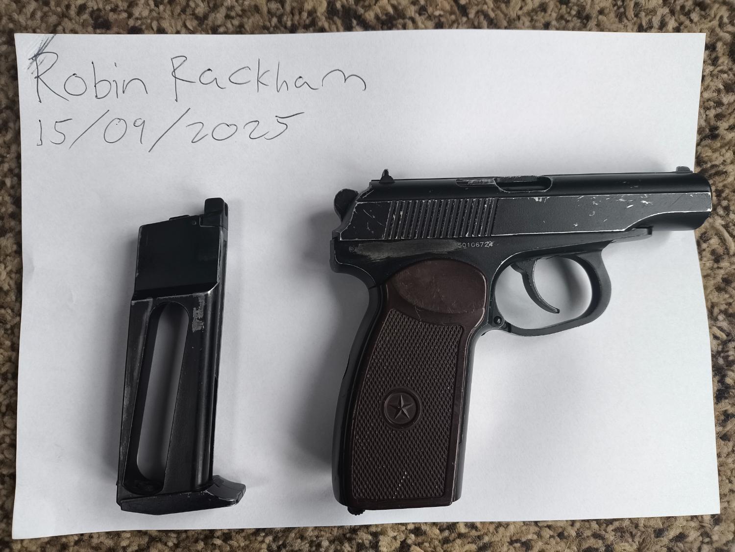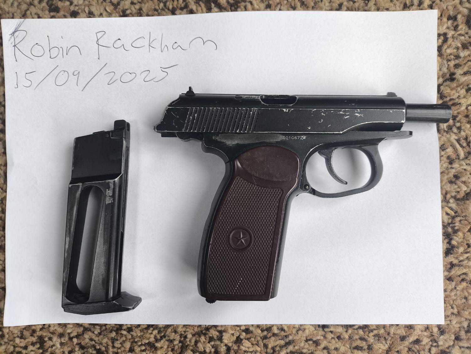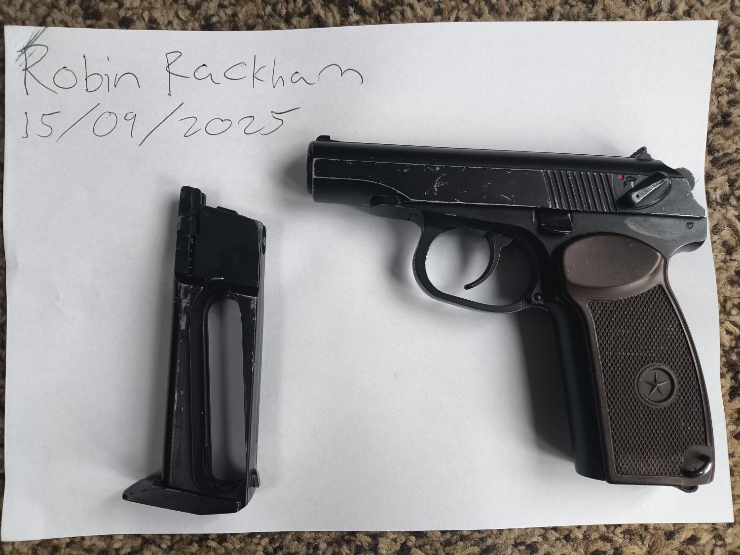 Used, thumb safety doesn't work because it's worn out apart from that the gun operates great.