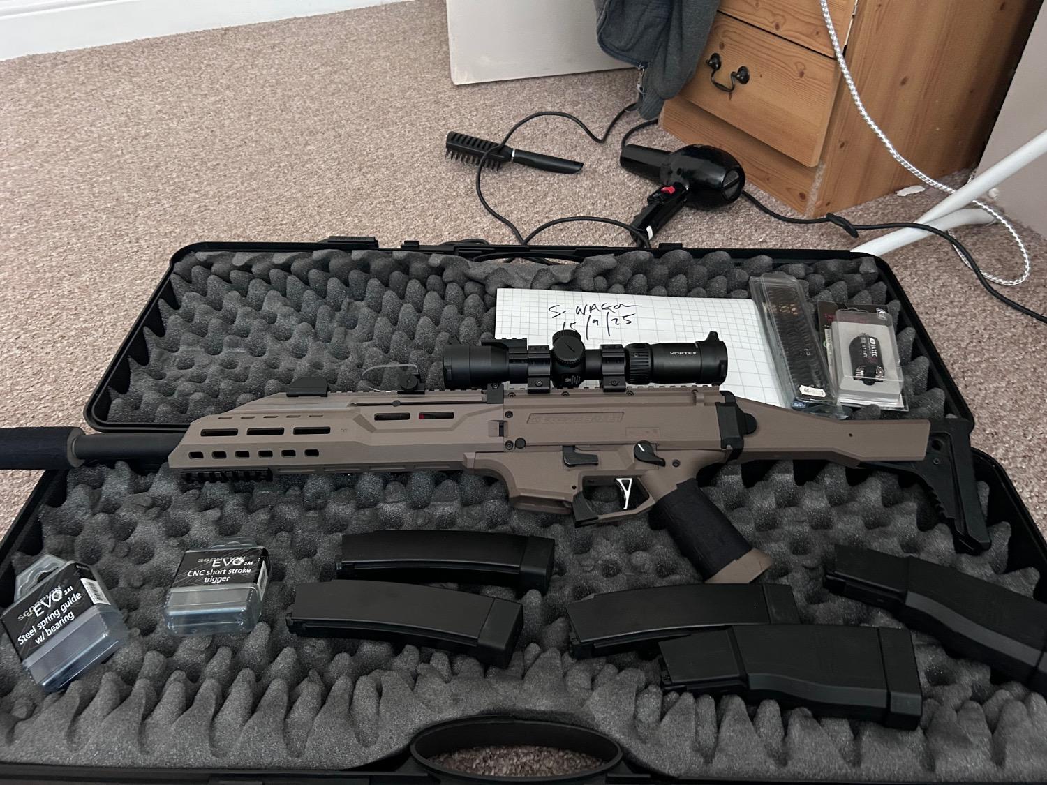 I’m unsure how to price this it’s a evo dmr a really nice piece of kit built by jd Airsoft evotek slings .4s to the moon set and locked to semi been done right comes with selection springs original parts can include hard case