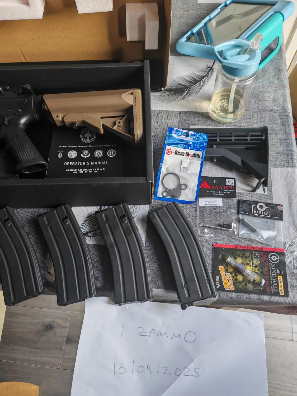 For sale is my M4 it's stock gun I was starting to buy the parts to upgrade the only upgrade that's in there is I replaced the nozzle with a upgraded one(angry gun) as my return spring snapped and it was easier to buy the whole nozzle(was being lazy).reason for sale is I don't like the 35rd mags and would like to get something else.