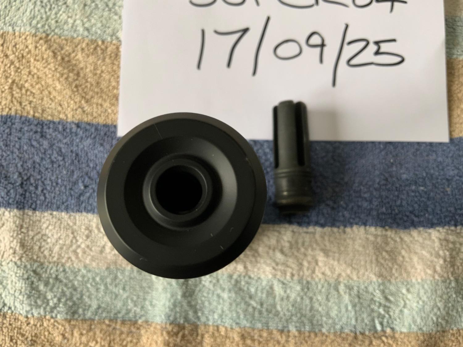 This is the full steel, heavy weight version of the HAO 556RC, which was classed as the hard core version. These are no longer available. Alleged to be able to withstand genuine 5.56mm pressures and offer actual sound suppression, although I’ve never tested this. These don’t come with a flash hider, but this will be supplied with a HAO full steel, 4 prong flash hider as the suppressor is not compatible with all makes of airsoft flash hiders.