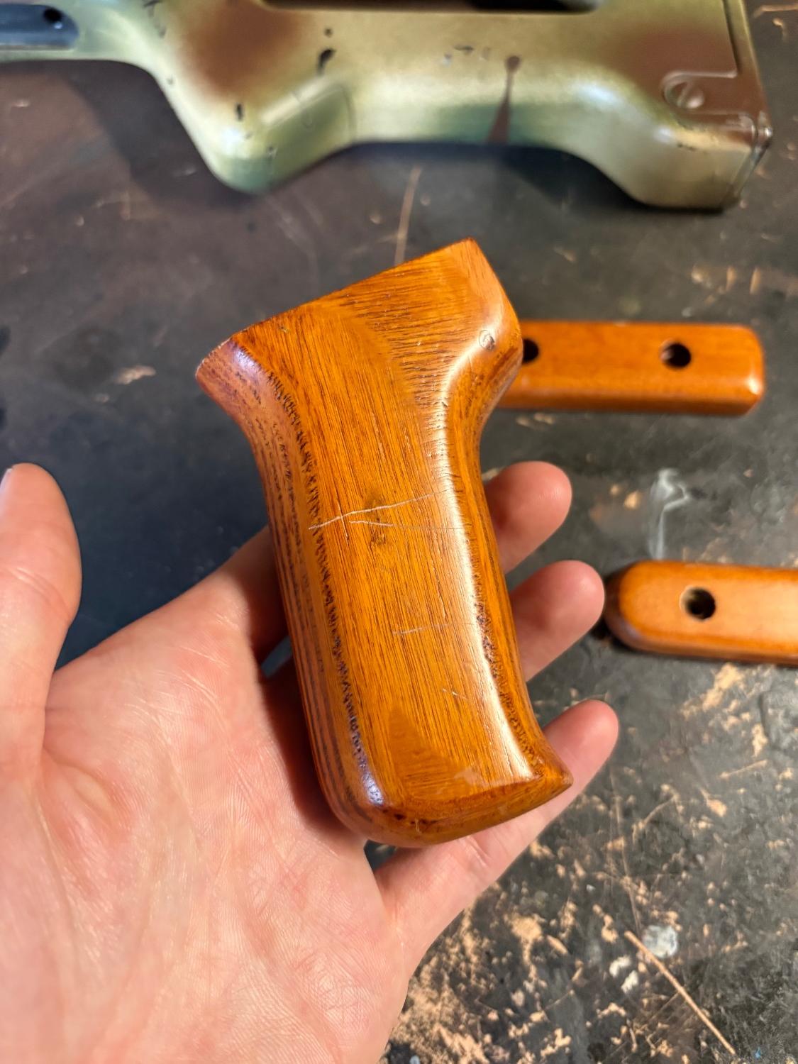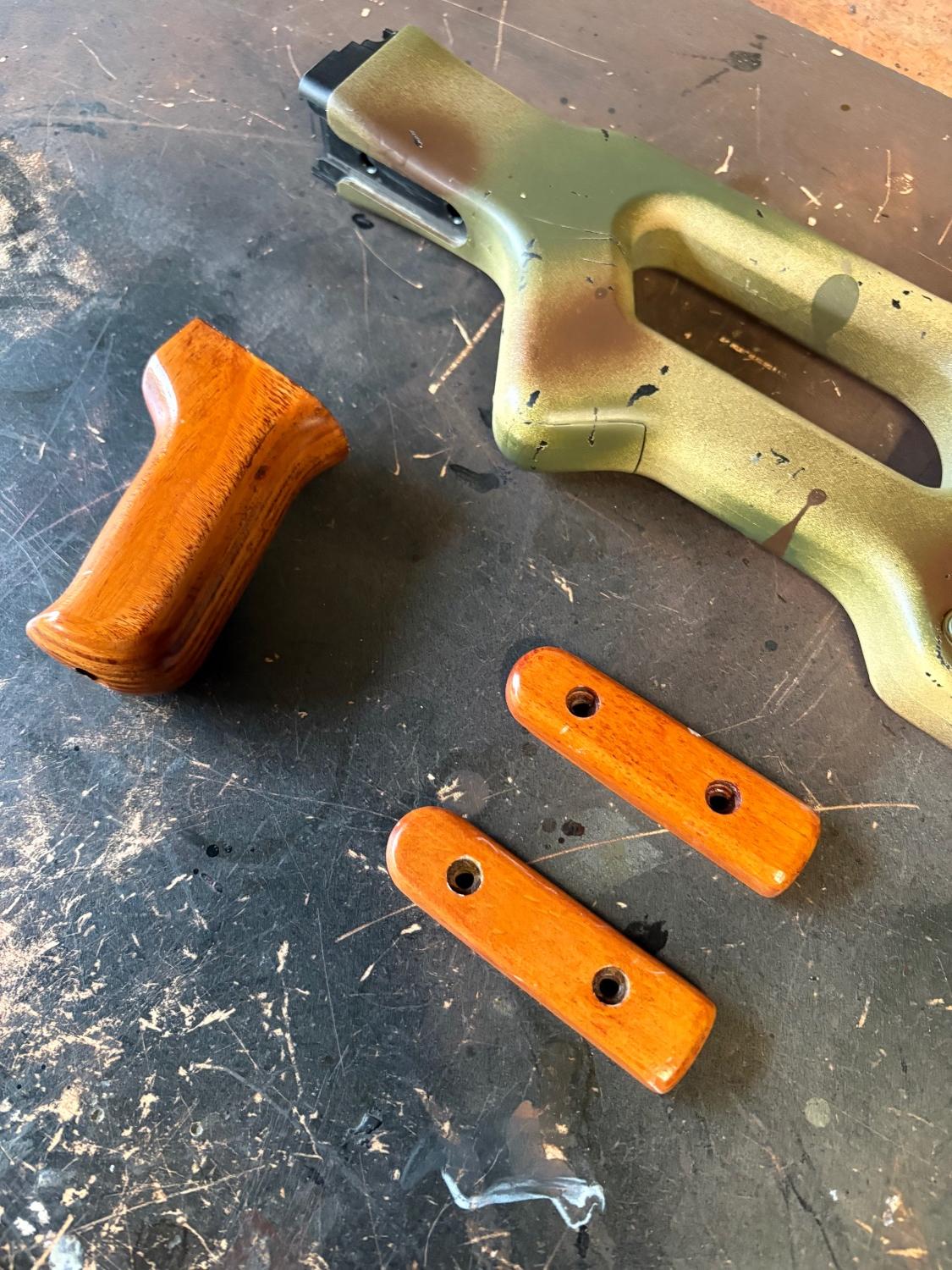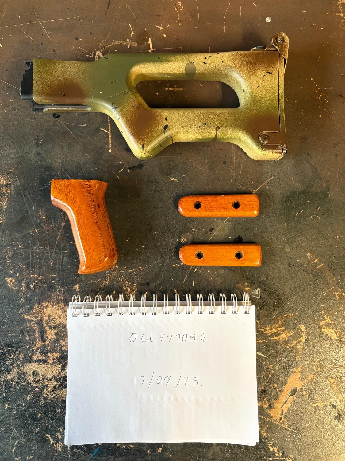 For sale is this set of A&K PKM accessories, including a wooden pistol grip, wooden carry handle and a polymer stock painted in a SSO Leto style paint job, reason for the sale is they are simply not required for my PKM build.