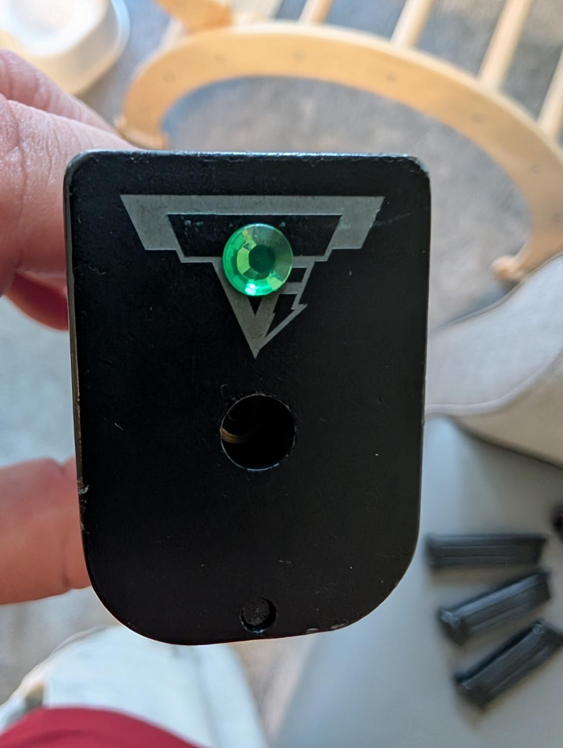 Includes 4 mags, one of which leaks from the bottom, identified by green dot sticker on base of mag.