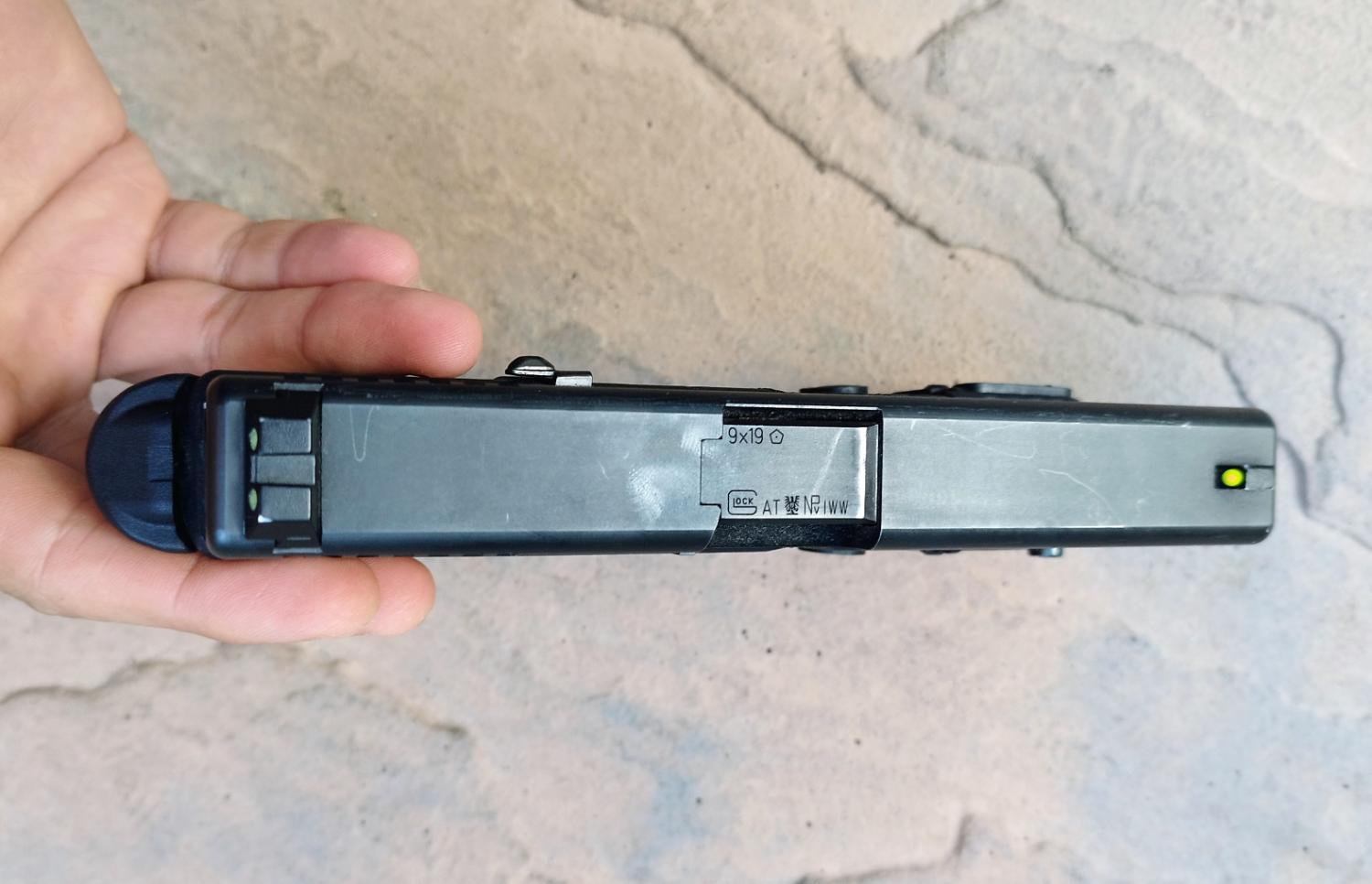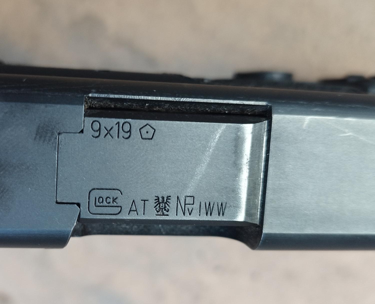 The slide has proper Austrian markings, with normal wear due to holstering and shooting. All works and cycles fine with the standard gas magazines, locks on empty as it should. For a better kick you can use CO2 mags. One mag is included in the price, l have extra mags for £25 each.