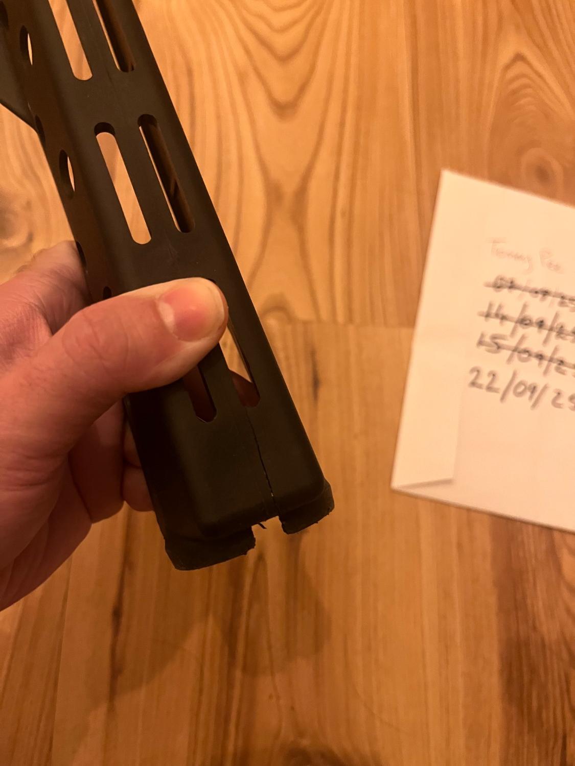 has a small crack on the delta ring end that has no impact on its fitting or stability other than making it easier to fit to a VFC with their stiff delta ring springs.