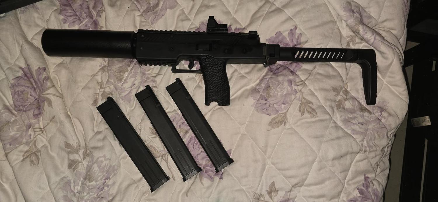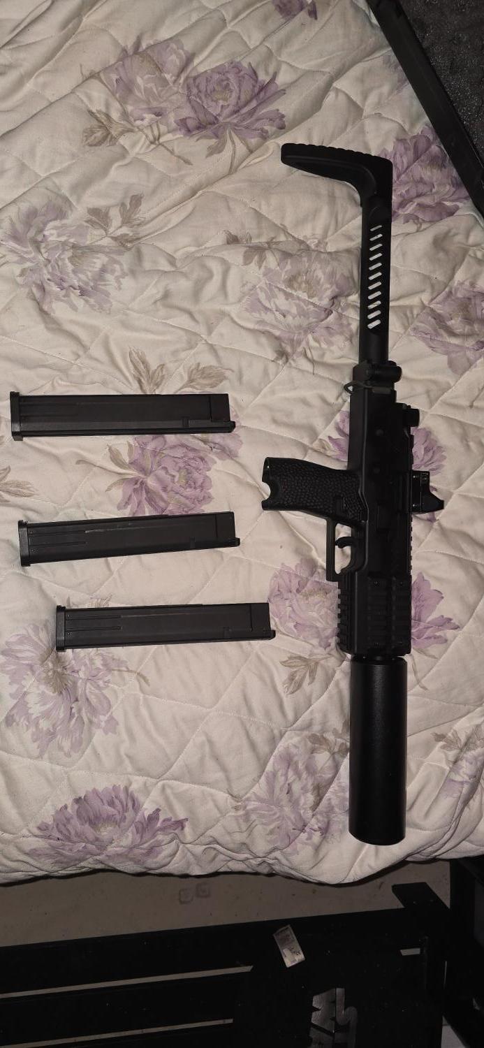 Full vmp1 package its also got the rear sling plate and pistol optics. Used twice and well looked after. Comes with the smg, supressor, folding stock, sling plate, ris rails, pistol optics, 3 leek free mags, viper tactical mag pouch.