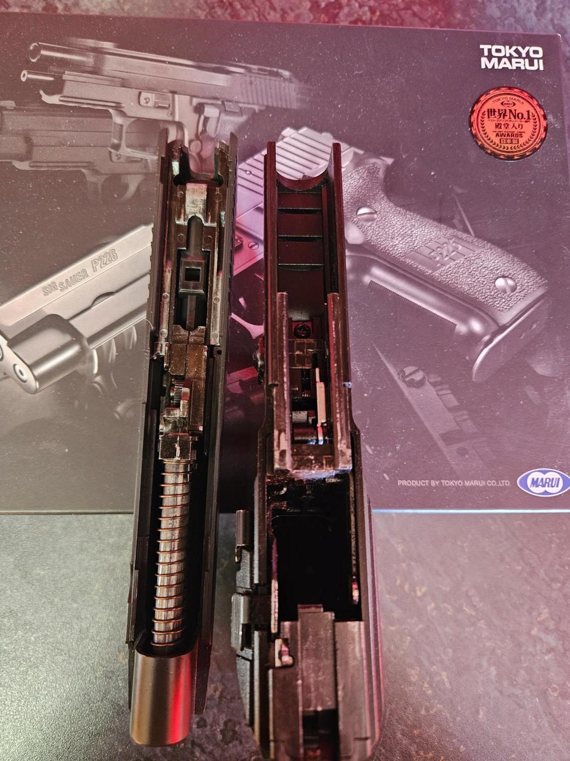 226 lower with E2 slide and mag, everything is stock Marui and in good condition. It doesn't lock back on empty, never has.