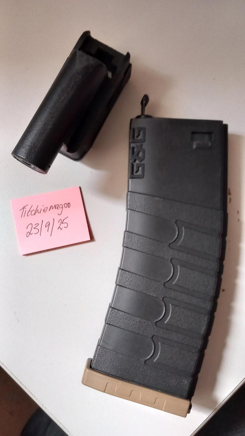 Run m4 mags on tri shot shotguns. Ran great in my GE gas one. Been previously modded to fit properly, unsure but it works. Includes a G&G midcap. £13 posted