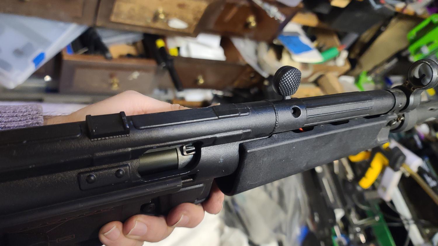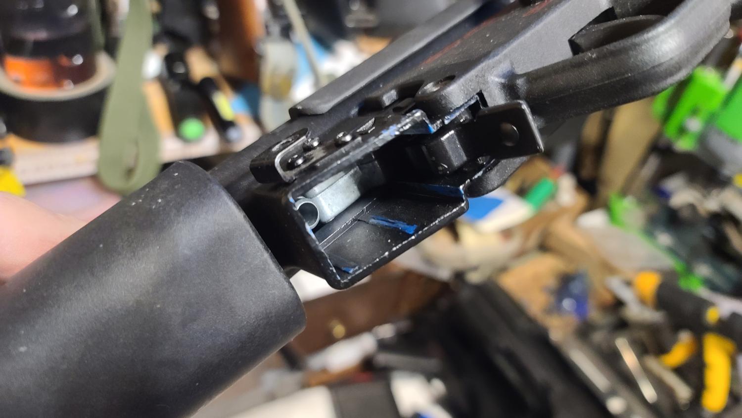 At least two of these were also originally two tone Blue - blue body and sliding butt section. You can see traces of it where they have been scratched through the black spray finish, especially the magwell. (I think the third one is a different make and was black to start with).