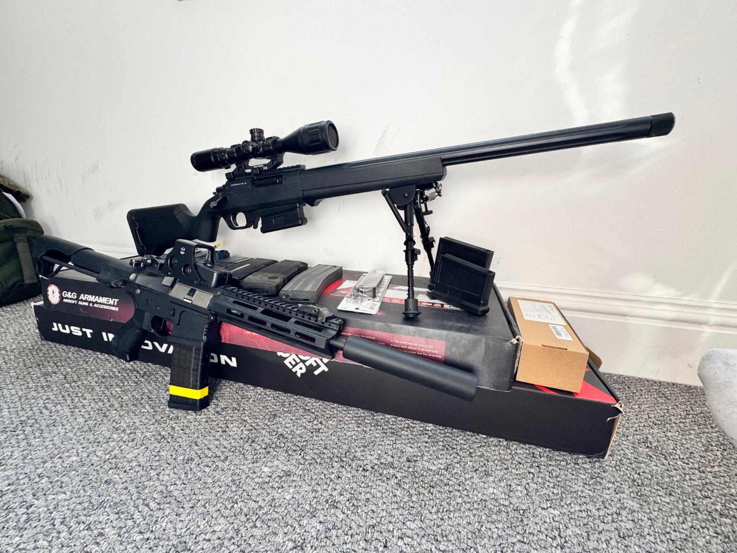 Bundle deal of 2 rifs, neither have been fielded, AEG has barely been fired only to test, sniper has been used for target shooting and has had around 150~ rounds through